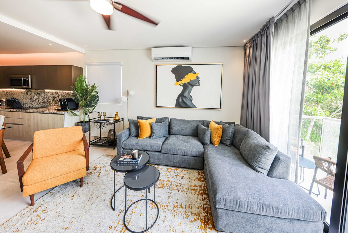Enjoy an unforgettable getaway in the Colibri apartment, located in Porto Blu. This cozy and modern one-bedroom apartment is ideal for couples, small families or groups of up to 4 people. Just steps from the ocean, it offers a tranquil retreat with access to a spectacular rooftop pool and a privileged location for exploring the best of Puerto Morelos. Here, each day begins with a sea breeze and ends with unforgettable sunsets.