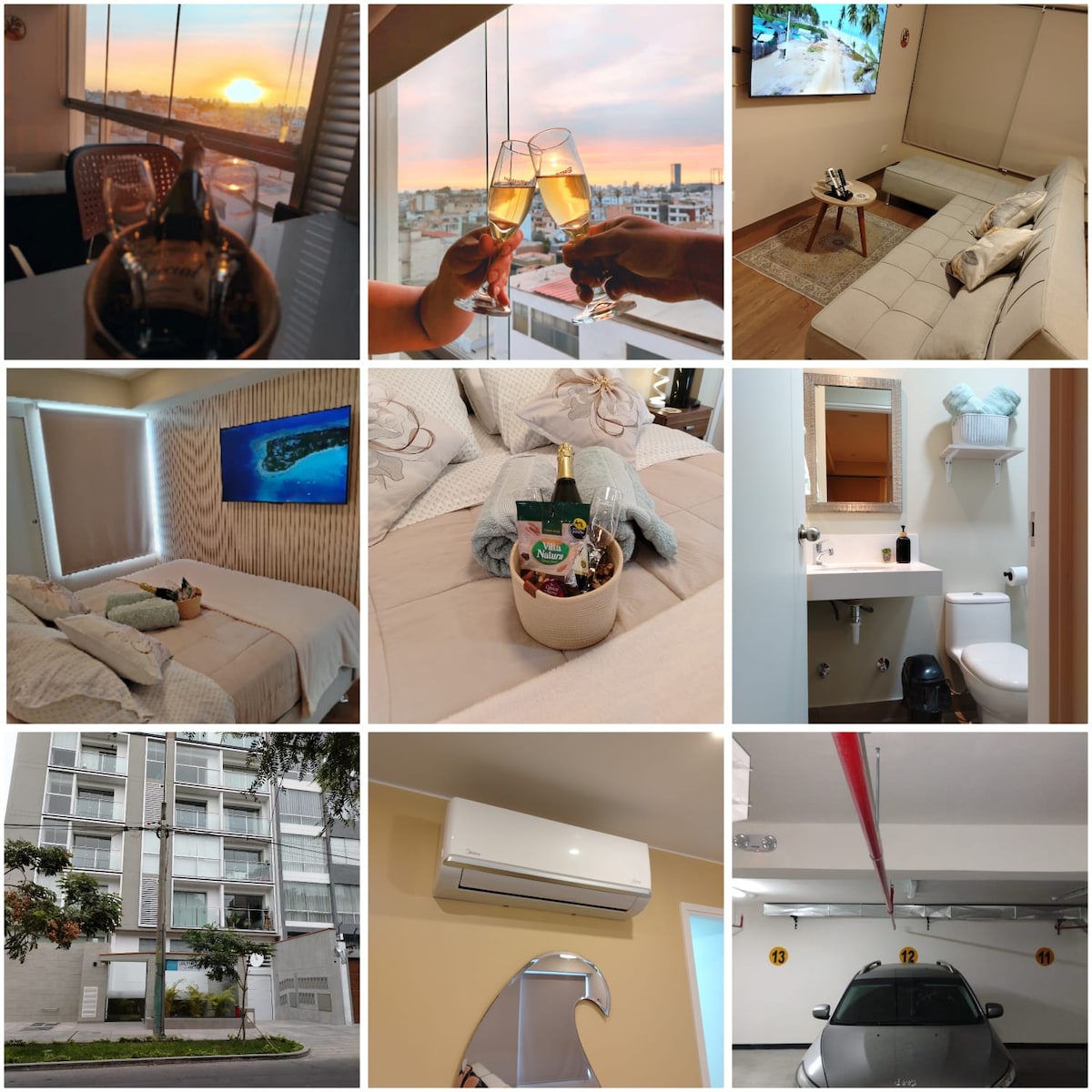 65 m2-es mini apartman alapszolgáltatásokkal. 2 fürdőszoba, 2 hálószoba, Wi-Fi, konyha, termál, hűtő, mikrohullámú sütő, erkély. Ideális legfeljebb 4 fős családok számára, akik Limába látogatnak. Kilátás egy parkra, amely a 3. emeleten található. A Jockey Plaza közelsége 8 perc alatt autóval, 1 háztömbnyire az Av épületétől. Circunvalación. Kevesebb mint 8 percre a Gran Teatro Nacional és a La Rambla bevásárlóközponttól Konyhai eszközök és evőeszközök is rendelkezésre állnak. Az 1 cdra. van egy szupermarket "Plaza Vea".