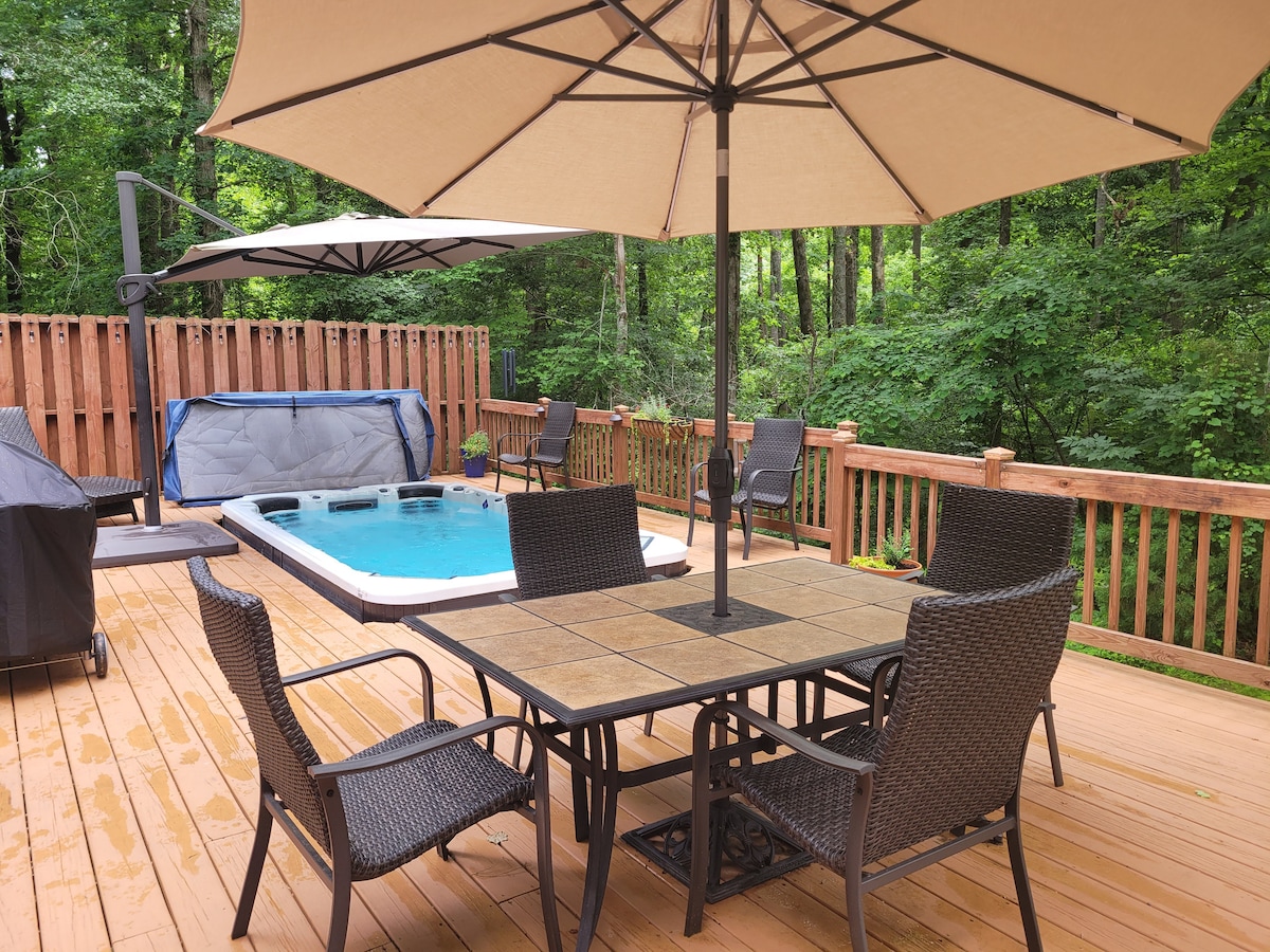 Képzeld el, hogy a levegő ropogós, és hamarosan beleveted magad egy barátságos, hívogató pezsgőfürdőbe. Paradicsomnak tűnik, nem igaz? Felejtsd el az aggodalmaidat, miközben élvezed a 121 jet spa boldog élményét. Foglalj, vagy értesíts minket legalább 6 órával a vízre érkezés előtt. Időre van szükségünk, hogy felmelegítsük, neked pedig időre van szükséged a fürdőruhád bepakolásához! A pezsgőfürdő használata előtt külön nyilatkozatot/megállapodást kell aláírni. Nagyszerű helyen található. A miniház az éttermektől, üzletektől és parkoktól nem messze található!