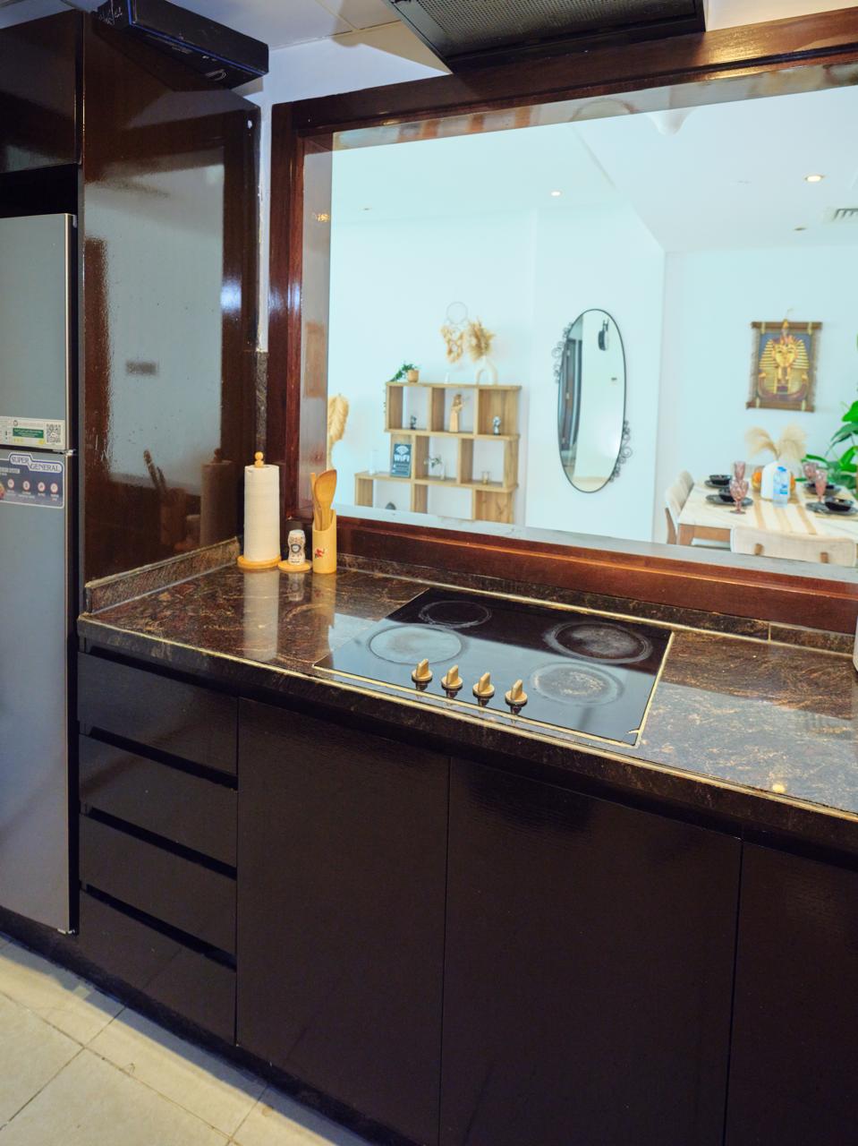 This place is bound to leave you wide-eyed with wonder. It's as if the dancing fountain is inviting you to unwind, all while the Burj Khalifa playfully winks at you. And you know what's even better? Enjoying your tea on the private balcony while taking in that incredible view. But wait, there's more! This fancy place is decked out with stylish appliances in the living area, kitchen, and bedrooms, making your stay super comfy. And as a cool bonus, there's a pool and a gym to top it off.