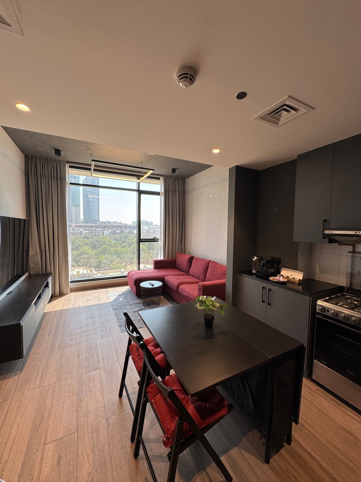 Experience luxury in this chic 1BR apartment in Jumeirah Village Circle 🌇. Stylishly furnished with aesthetic touches and modern comfort 🛋️, it’s your perfect Dubai retreat. Just a short drive to Miracle Garden 🌸, Jumeirah Beach 🏖️, Mall of the Emirates 🛍️ & Global Village 🎡. Ideal for work or leisure, enjoy elegant design, cozy vibes, and full amenities ✨ Your relaxing, upscale Dubai stay starts here! 🌟