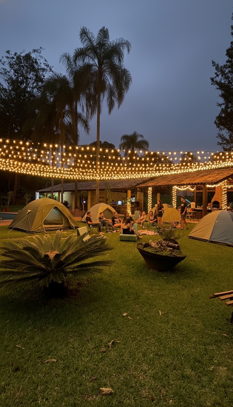 Hospedagem em sítio na Serra do Japi, com uso exclusivo da sede, salão e piscina para até 20 pessoas. Ideal para grupos e famílias, acomoda 8 hóspedes em camas; hóspedes adicionais devem trazer colchões, sleeping bags ou barracas próprios. A sede oferece salas integradas com lareira, sala de jantar, cozinha completa e ambientes de apoio. Área externa com piscina, churrasqueira, forno de pizza e vestiários masculino e feminino com chuveiros. Conforto, privacidade e contato direto com a natureza.