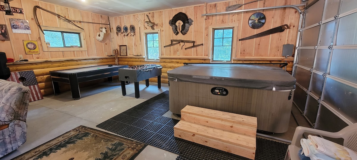 Üdvözlünk a DeerFox Cottage-ban, egy otthonos pihenőhelyen, amelyet nyílt mezők, friss levegő, fák, szarvasok, rókák és vándorló pulykák vesznek körül. Túrázóútvonalak, tavak, golfpályák és horgászhelyek közelében található. Egy napot töltesz a Dellsben? Gyere vissza, és lazíts a természet csendjében. Hallgassátok az erdő hangjait, áztassátok magatokat a pezsgőfürdőben, vagy pihenjetek a tűz mellett – akár egyedül töltitek az időt, akár a családdal vagy a barátokkal töltitek az időt, ez a békés menedék egész évben vár benneteket.