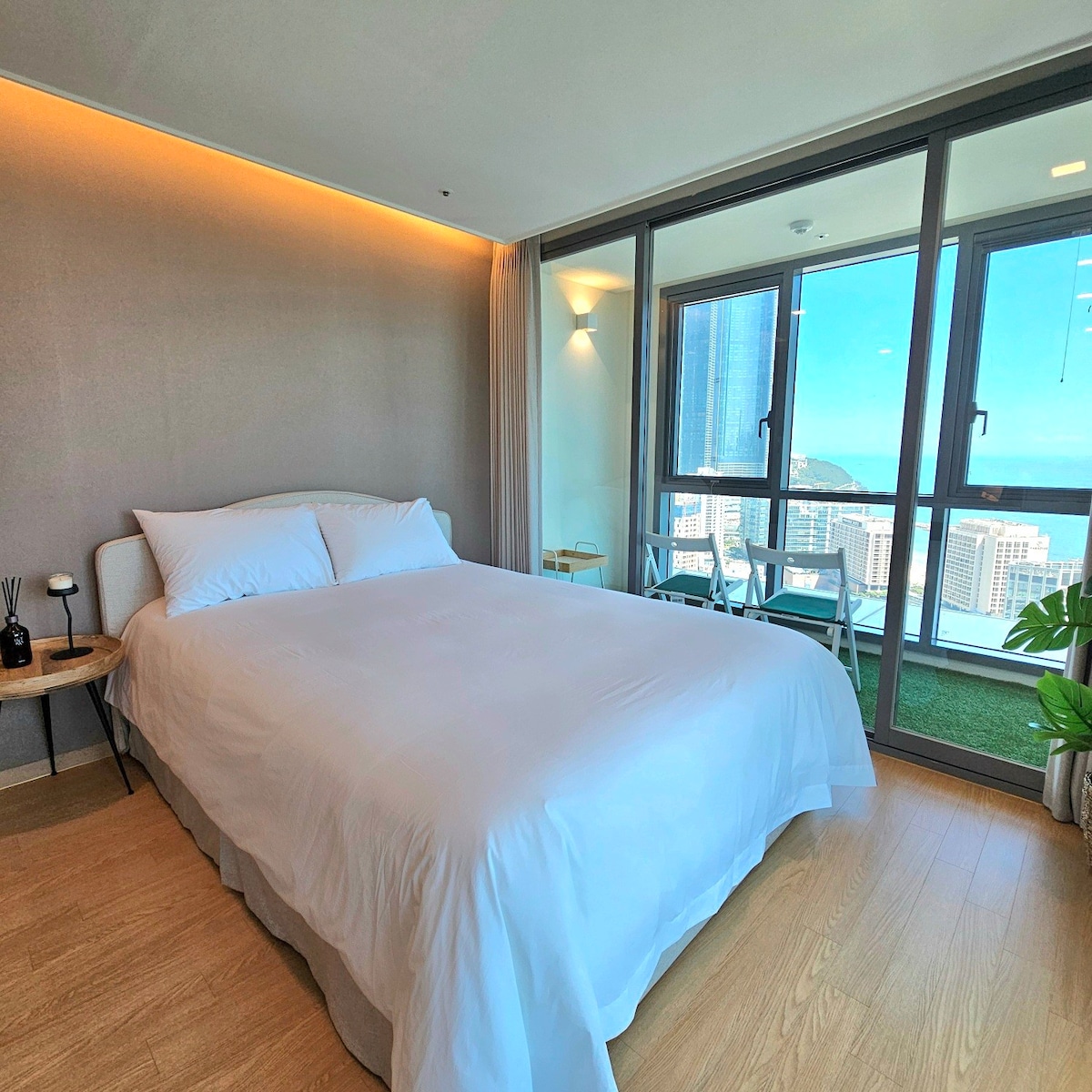 1. Reggeli naplemente a Gwangan-hídra néző kilátással és nyitott terasszal, 2 queen méretű ágy a hálószobában.Ingyenes parkolás (csak 1,55 M alatti autók) Elektromos autók x 2. 12 másodperc a strandtól fehér homok - 3. A kisboltok és a híres kávézók 15 másodpercre vannak... 4. A legújabb „Dyson Air Lab” ingyenes használata (az előző nap bérelve) 5. 2-es metróvonal (Geumnyeonsan állomás) West 430m,5 perc távolságra- 6. Új épület (körülbelül 3 év) kellemes környezet - 7. Tágas beltéri tér (beleértve a 24 pyeong/nyitott teraszt) 8. Tisztítsd meg a beltéri teret és a 100 hüvelykes Netflix ingyenes megtekintését