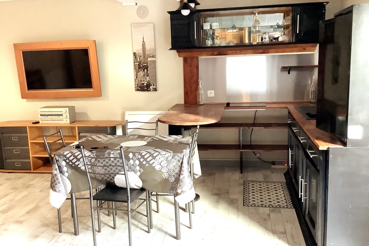 Egyedi kikapcsolódásra vágysz egy elegáns szálláshelyen, és tippeket keresel Aix les Bainsben töltött időd során? A „Le Nordique” egy 40 m²-es NAGY STÚDIÓ, amelyben egy PRIVÁT HIDROMASSZÁZSOS HIDROMASSZÁZSOS FÜRDŐ és egy SZAUNA található. Egy közelmúltbeli ház második és legfelső emeletén található, ahol élveztük a képzelődést, az építkezést és a tereprendezést, hogy emlékezetes pillanatokat élhessünk át Aix les Bainsben.
