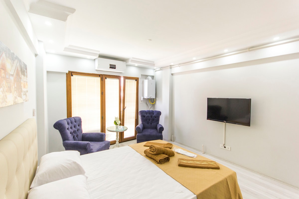 This studio apartment is located at the heart of city’s coolest neighbourhood ''Moda'' walking distance to Kalamış Coast, shops, restaurants, famous bars, markets and all transportation. Just a 5 minutes walk to the famous “Boğa Heykeli”. - Designed with taste, this apartment will be ideal for anyone who is seeking comfort, a “home like” atmosphere, accessibility to major tourist attractions. -Self check-in is also available using the password. -The sofa is prepared for the third person.