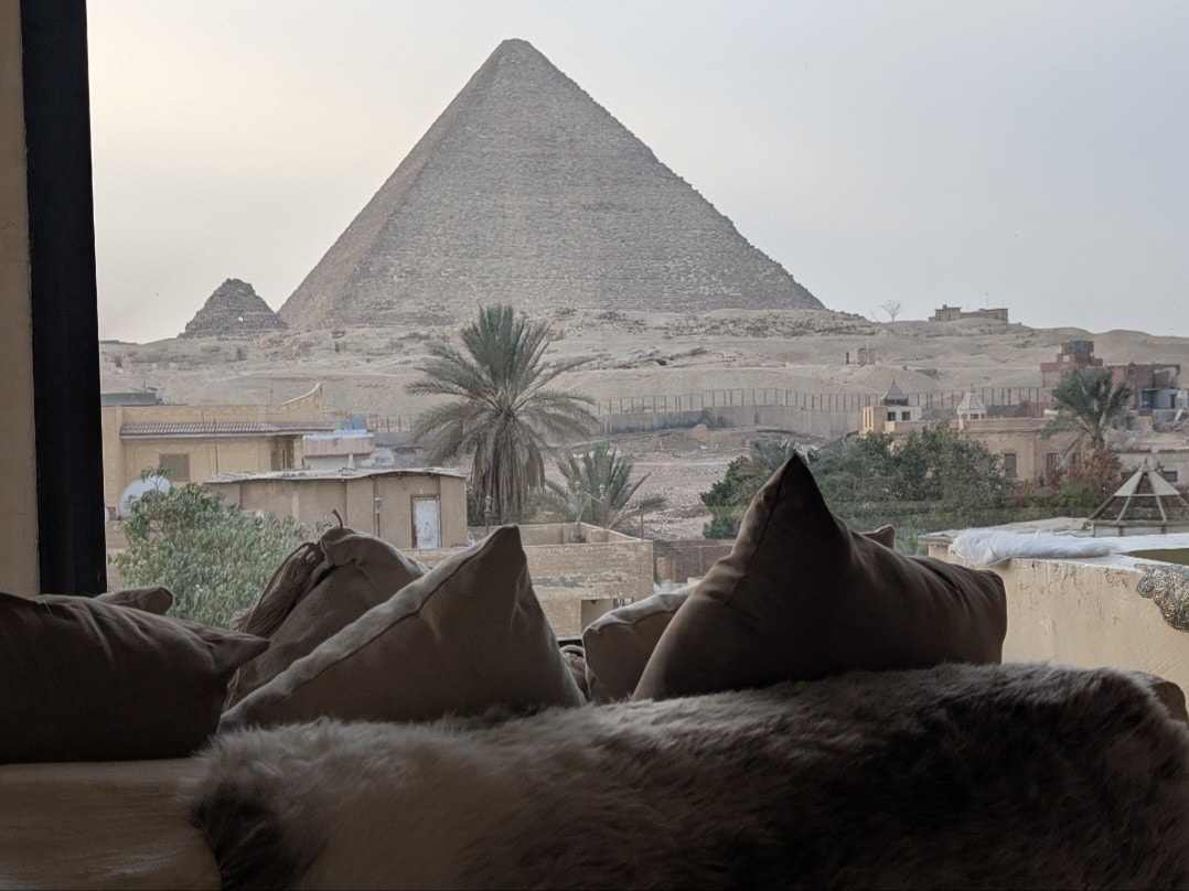 Érezd jól magad a gízai piramisokra és a szfinxre nyíló panorámával Igen! a kilátás és a képek 100% -ban valósághűek. (Mindenképpen nézd meg a többi hirdetésünket is) Élvezd a gízai piramisok lenyűgöző látványát bárhonnan ebben a kortárs keleti stúdióban, vagy miközben a jacuzziban pihensz. A piramisok bejárati kapujától is 10 perc sétára található. Ha a legtöbbet szeretnéd kihozni az utazásodból, mindenképpen nézd meg az élményeinket! Elkötelezettek vagyunk amellett, hogy vendégeinknek olyan varázslatos vendégszeretetet biztosítsunk, amilyet megérdemelnek.