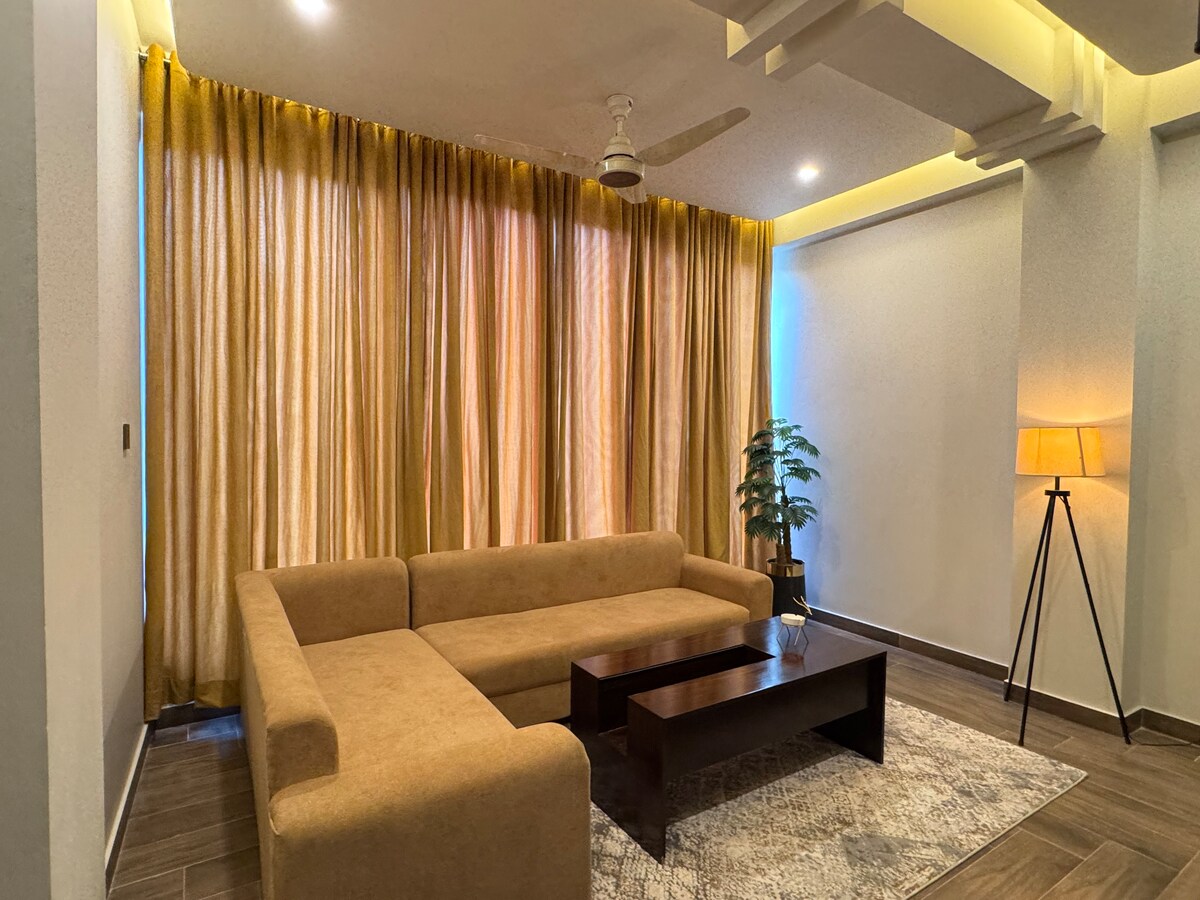 Luxury 2-bedroom penthouse with a master bedroom, separate living and dining area, and a small kitchen with microwave, refrigerator, and hotplate. Spacious and comfortable with beautiful city views, ideal for families and long stays. Located near Earthquake Memorial Bridge, Neelum & Jhelum River View Point, Red Fort (Rutta Qila), Gojra Bazaar, Subri Lake, and Dhani Waterfall. Perfect location for tourists and travelers.