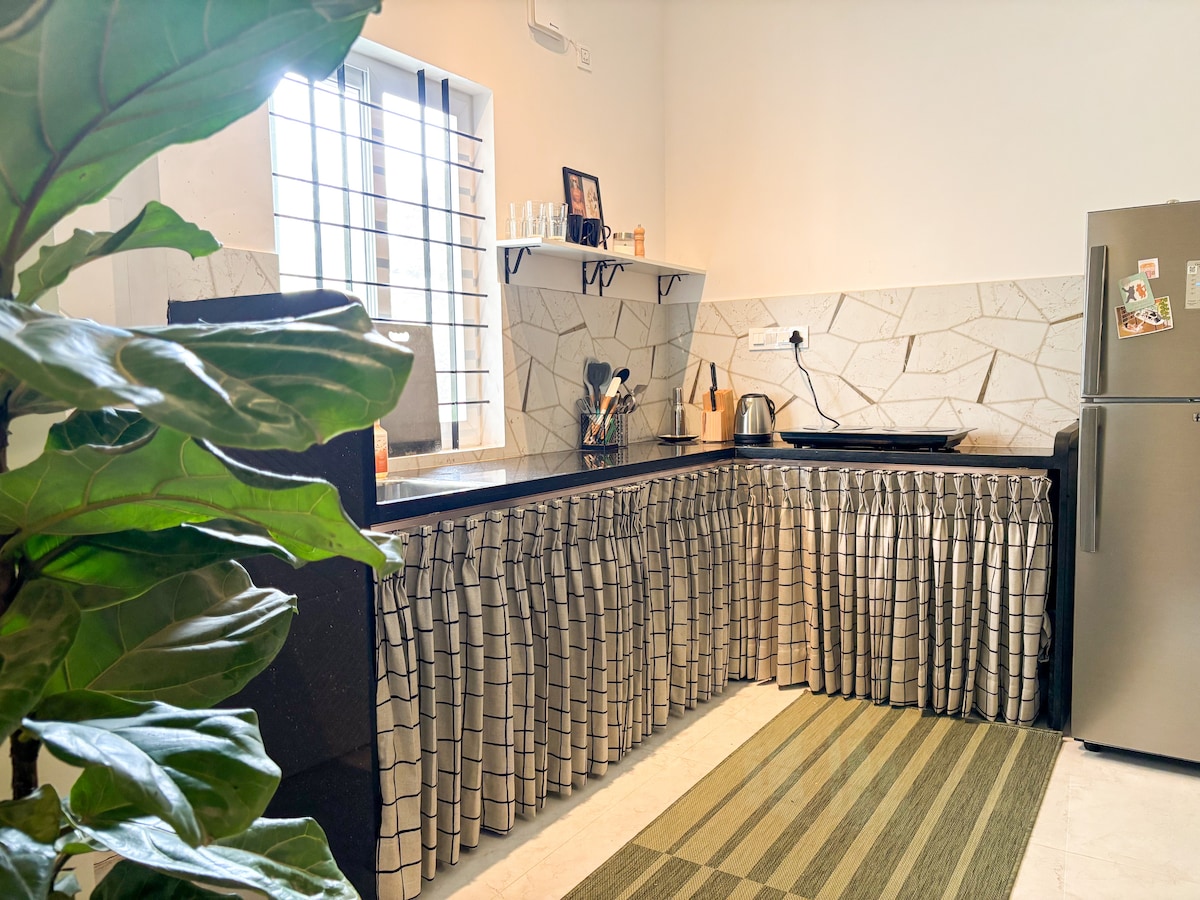 Az Olive's Tranquil egy hangulatos 1BHK a Sarjapur Roadon, olyan népszerű helyek közelében, mint a Vapour Brewpub, a Hoot és a Byg Brewski. Tökéletes az utolsó pillanatban foglalt foglalásokhoz, üzleti utazókhoz, párokhoz és hétvégi kiruccanásokhoz. Élvezd a stílusos lakóteret, a teljesen felszerelt konyhát, a kényelmes hálószobát és a magánéletet egy biztonságos közösségben. Gyors hozzáférés az informatikai parkokhoz, kávézókhoz, bevásárlóközpontokhoz és tömegközlekedéshez. Nagy sebességű internet és a főbb OTT-platformok a szórakozásod érdekében.