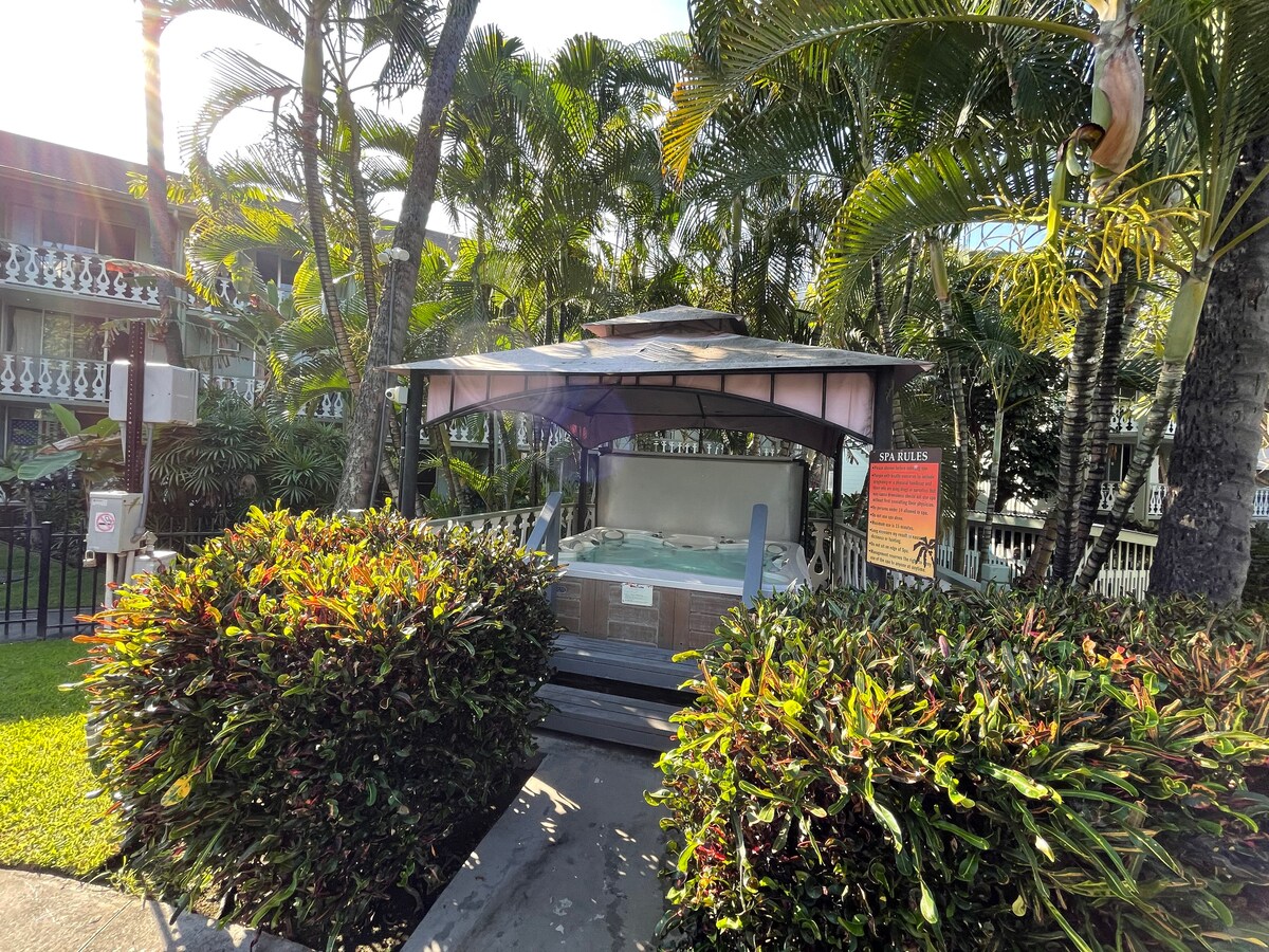 A Kona Islander Inn komplexumában található, amely a Kuakini autópályától az Alii Drive-ig terjed. Gyönyörű trópusi kertek banánfákkal, egzotikus virágokkal és zöld pázsittal, miközben eljutsz a medencéhez, a jacuzzihoz és a grillezőhöz. Lehet, hogy soha nem szeretnéd használni az autódat, miután berendezkedtél, mert a legjobb éttermek, nagyszerű táncok és élő szórakoztatások egy rövid sétával elérhetők.
