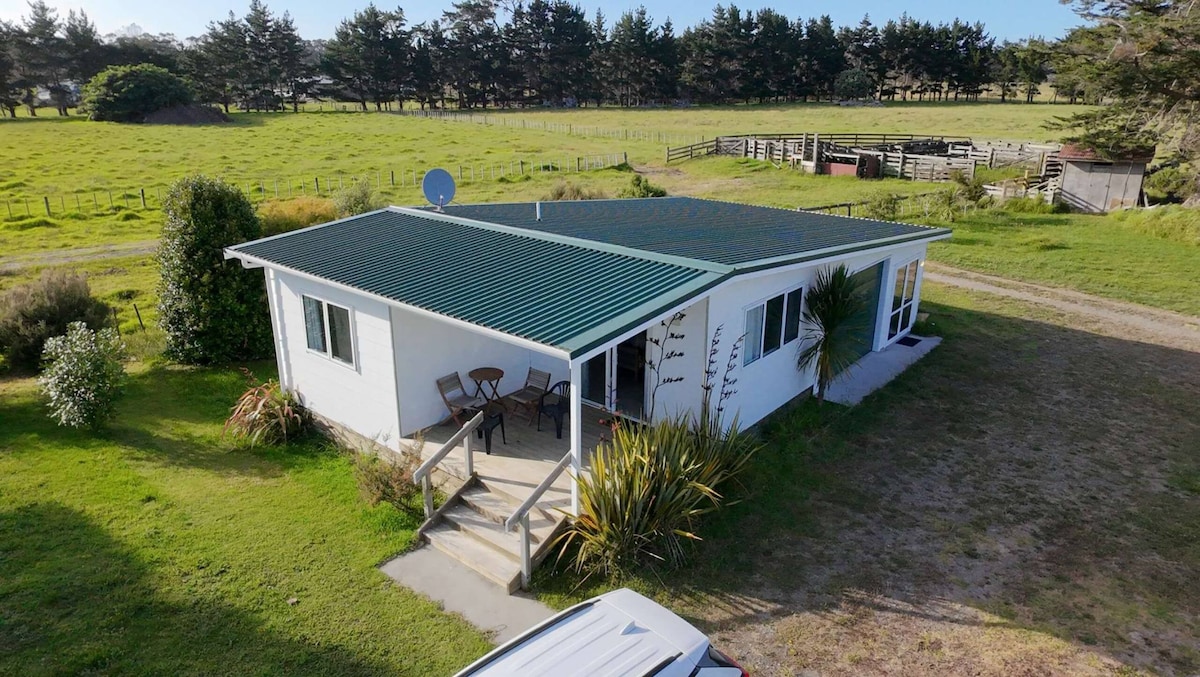 Rusztikus faépület a domboldalon lévő vidéki ingatlanunkon. Egy kényelmes egyszemélyes ágy . Reggelizősarok ablak a mezőkre és az SH10-re néző kilátással, vagy kint a kis teraszon. A WC és a zuhany a főépületben található, amely külön bejárattal rendelkezik, és meg kell osztani más vendégekkel, ha elfoglalják a másik nagyobb kunyhót. A főépületen kívül van egy főzőhely, 2 gázpont, edények, serpenyők stb. és internet is elérhető ezen a területen. Dupla mosogató a mosogatáshoz. Nagy parkoló. .