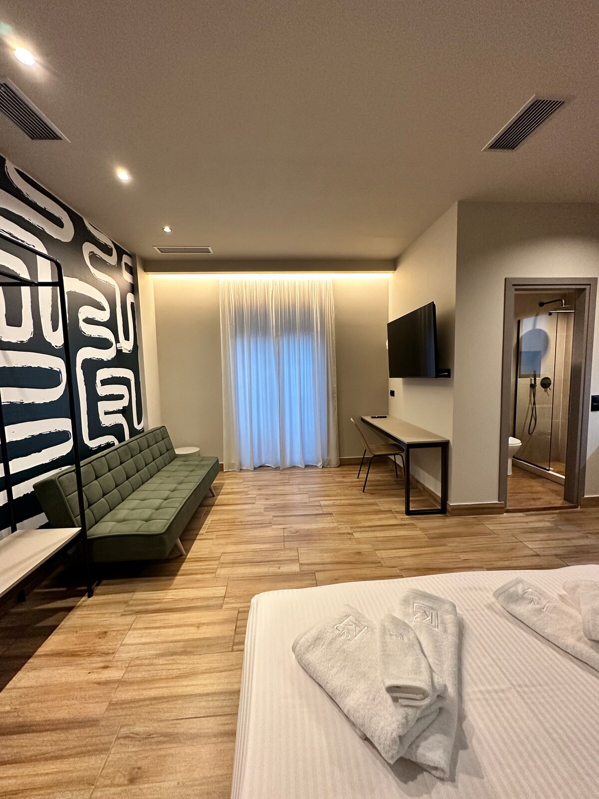 A K2 Suites Kalamata egy 7 emeletes butikhotel, amely Kalamata történelmi városközpontjának szívében található. Szuper stílusos lakosztályok, amelyek egy nagyon csendes környéken találhatók a városközpontban, ahol gyalogosan is eljuthatsz Kalamata városába. 2. lakosztály, franciaággyal, nyitott gardróbbal, teljesen felszerelt konyhával és fürdőszobával, 55hüvelykes TV-vel és városi kilátást nyújtó saját erkéllyel rendelkezik. A 2. lakosztály ultragyors Wi-Fi-vel rendelkezik, amelynek sebessége meghaladja az 500 Mbps-ot.