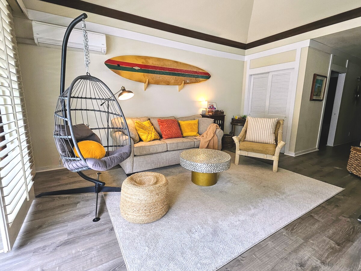 Üdvözöl a „Wahi Maluhia”! Békésen töltheted fel a lelkedet ebben a gyönyörű, egyszerű trópusi lakásban. Sétálj le a partra, élvezd a medencéket és a gyógyfürdőket, teniszezz, és használd ki a szomszédos üdülőhely és a festői óceánparti környezet nyújtotta lehetőségeket. Az ingyenes parkolás könnyű életet és menedéket nyújt a sziget csodálatos és sokszínű látványosságainak felfedezése után. Kényelmes helyen, 5 percre a repülőtértől, majd egyenlő távolságra az északi és nyugati pontoktól, hogy elindulhass minden nap kalandjaira!