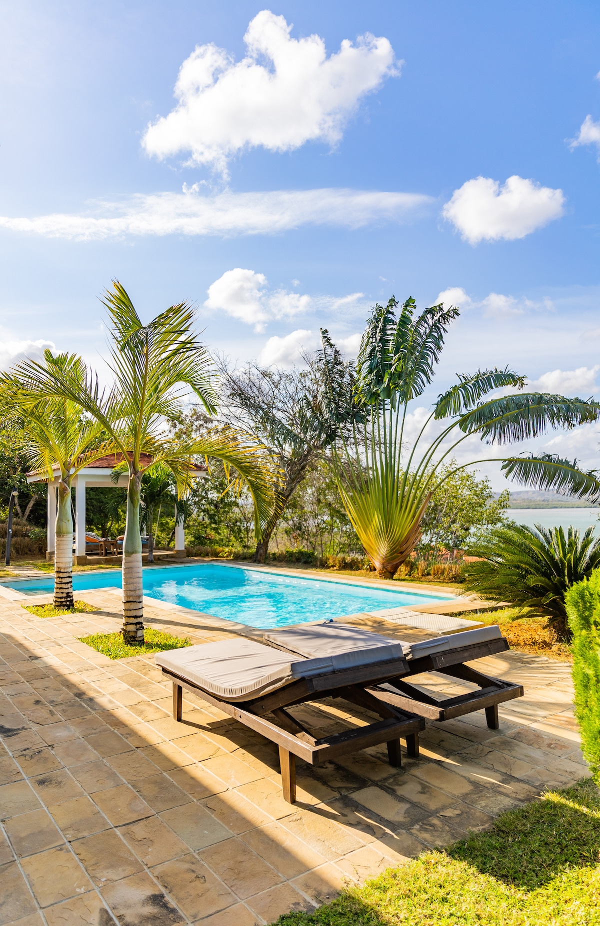 Kilifi patak mellett, az Indiai-óceánra néző, saját medencével, 3 fürdőszobával, nyitott konyhával és friss tenger gyümölcseivel minden nap. Ez a gyönyörű otthon a Mandharini Estate területén található, és 15 perc sétára van a Mandharini Beach-i bejárattól. Ébredj fel az óceán gyönyörű kék látványára, feküdj le a kültéri hintaágyunkra, és nézd a napfelkeltét, vagy mártózz meg a medencében. Ez az otthon privát szférát, kikapcsolódást, meghittséget és egy kis romantikát kínál.