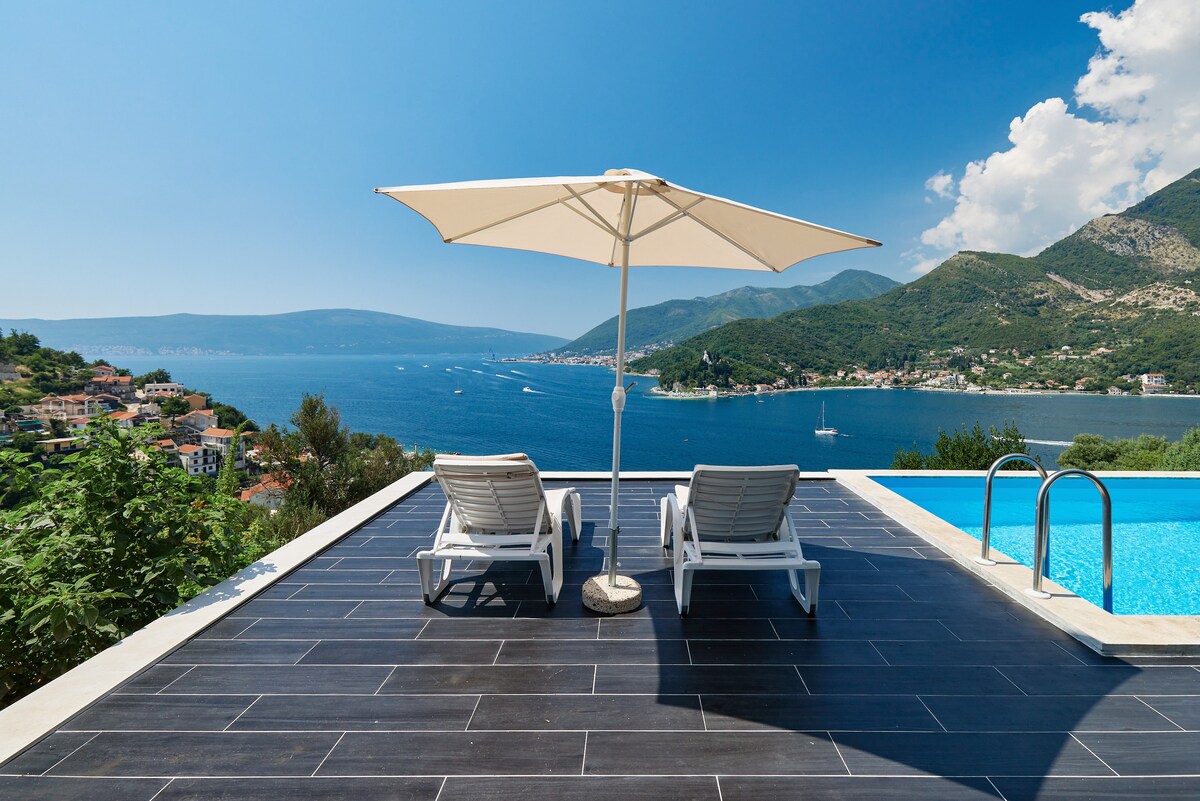 Egy hálószobás apartman medencével és kilátással a Tivat-öbölre