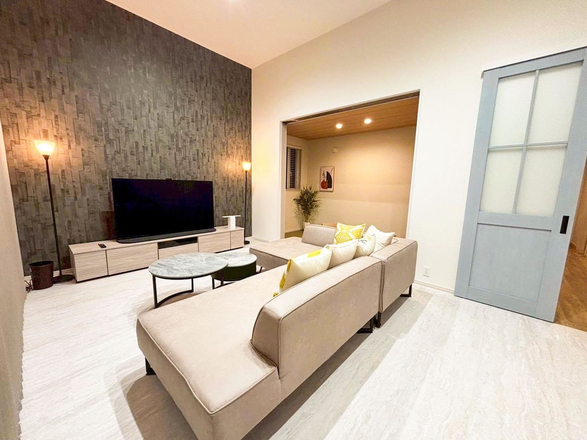 Free one-way taxi from Asahikawa Airport or Station for stays of 2 nights or more! Enjoy top-rated comfort in our brand-new designer house. Each guest gets a unique PIN code for security 🔐. Kids can safely play in the private courtyard or enjoy a BBQ 🍖 in warmer seasons. Great access — only 8 min from Asahikawa-Kita IC, 3 min walk from JR Nagayama Station, and 20 min to Asahiyama Zoo or ski resorts. Fully equipped workspace for remote work. Perfect for families or business stays!