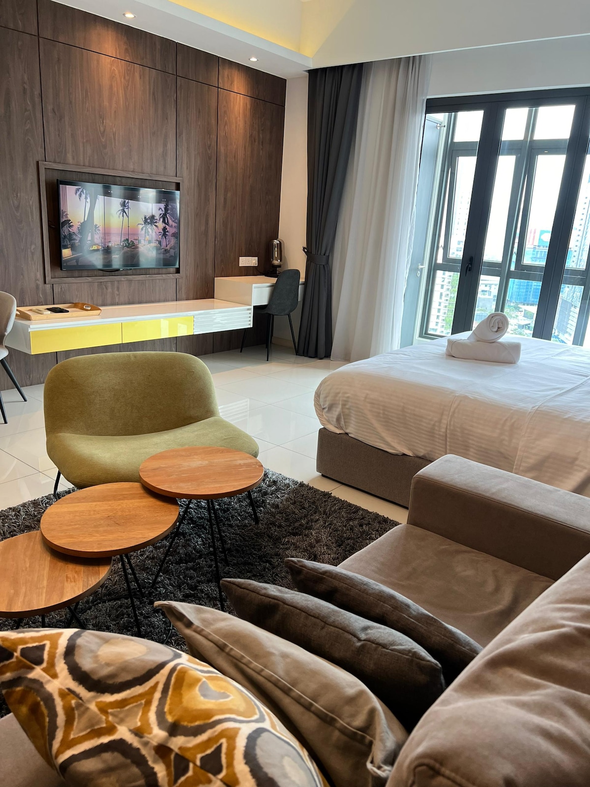 🏢 Szállj meg kényelmesen a Scarletz Suites KL-ben, egy elegáns, 48 emeletes toronyban, amelyből lenyűgöző kilátás nyílik a Petronas Twin Towersre. ✨ Miért szeretik a vendégek? 🏊♂️ Tetőtéri végtelenített medence ikonikus kilátással a városra 💼 Üzleti váróterem + INGYENES 100 Mbps-es Wi-Fi 📍 5 perc sétára a KLCC, LRT/MRT és a város népszerű helyei 🛏️ Stílusos, hangulatos egység önálló bejutással és okos TV-vel Kávézók, tetőtéri edzőterem, nonstop biztonsági szolgálat és helyi ételek🚉 veszik körül.🔥 Ideális városnézéshez, üzleti utakhoz és romantikus kiruccanásokhoz. 🌇✨