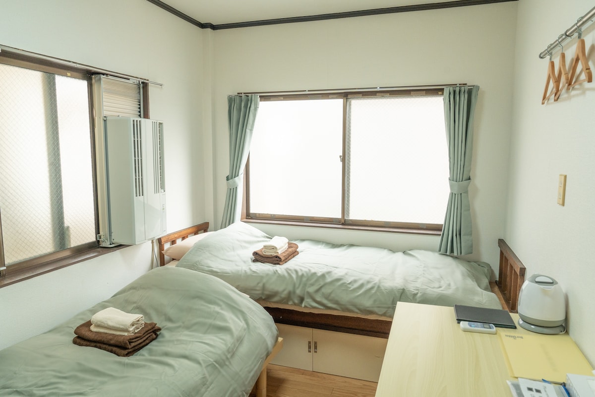 3 minutes walk from Kameari Station, 3rd floor (no elevator) There is a standing bar and karaoke (open 24 hours) in front of the building, and an izakaya on the 1st floor. Please note that noise may be an issue as the building faces a shopping street. Disney: Approximately 1 hour by bus Facilities Wi-Fi 3 single futons Towels Air conditioner, TV, washing machine, refrigerator IH, microwave, kettle Full-length mirror Hair dryer Shampoo, conditioner, body soap Toothbrush, earplugs