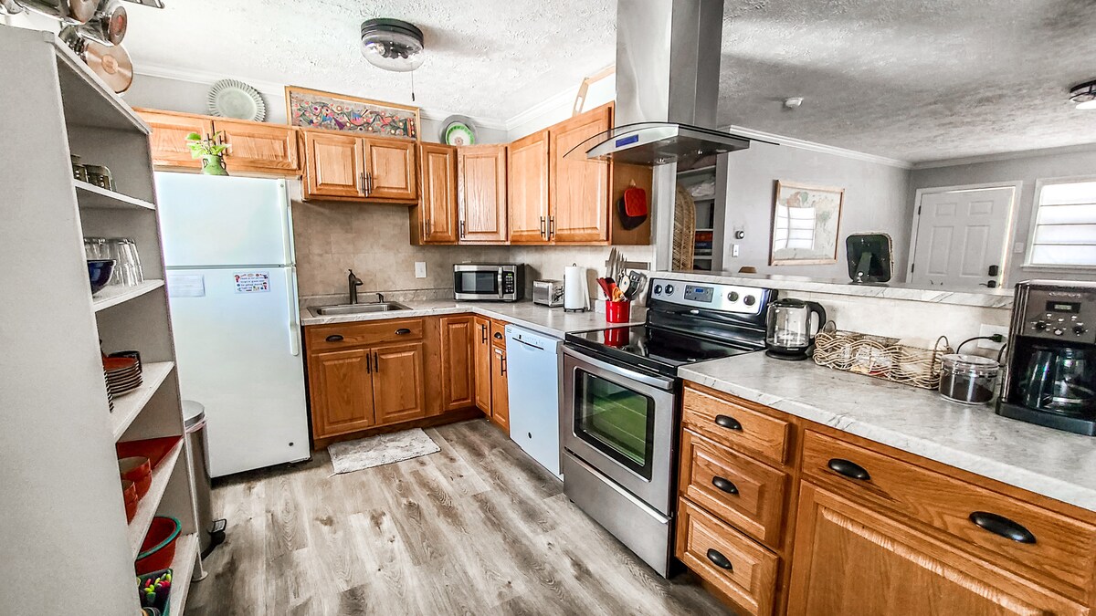 Szórakoztató hely Aggieville mellett. Bútorozva a sok sárral, amit bárcsak otthonról hoztál volna. Teljes konyha az összes fazékkal , serpenyővel és dugóhúzóval. Luxus gélhab matrac. Kiváló minőségű ágynemű. Az összes kávét ihatod, és az alapvető turmixgép. Van még egy felfújható matrac azoknak a buta barátoknak, akiktől nem tudsz megszabadulni. Kábel az összes sportcsatornával és nagyszerű wifivel. Nagyszerű elhelyezkedés és árak. Superhost-házigazdák vagyunk, így tudjuk, mit csinálunk. Próbáld ki.
