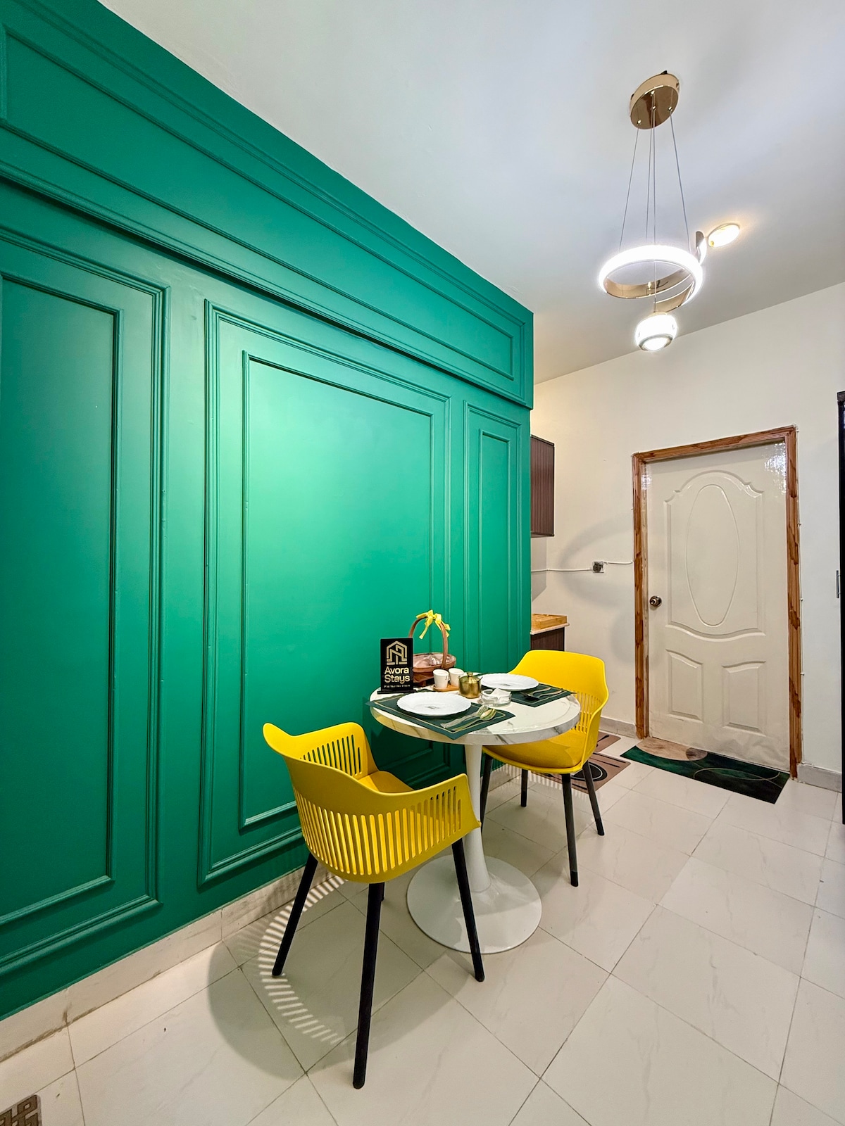 Welcome to Green Opal – DHA Phase 6 | Avora Stays Stylish studio for up to 4 guests with private home cinema, modern dining, fully equipped kitchen, cozy bedroom, and two washrooms. Enjoy AC, WiFi, smart TV, secure parking, building CCTV, and caretaker. Laundry and breakfast available on request. Full access to apartment. CNIC/Passport required for check-in. Perfect blend of comfort, style, and convenience in DHA Phase 6.