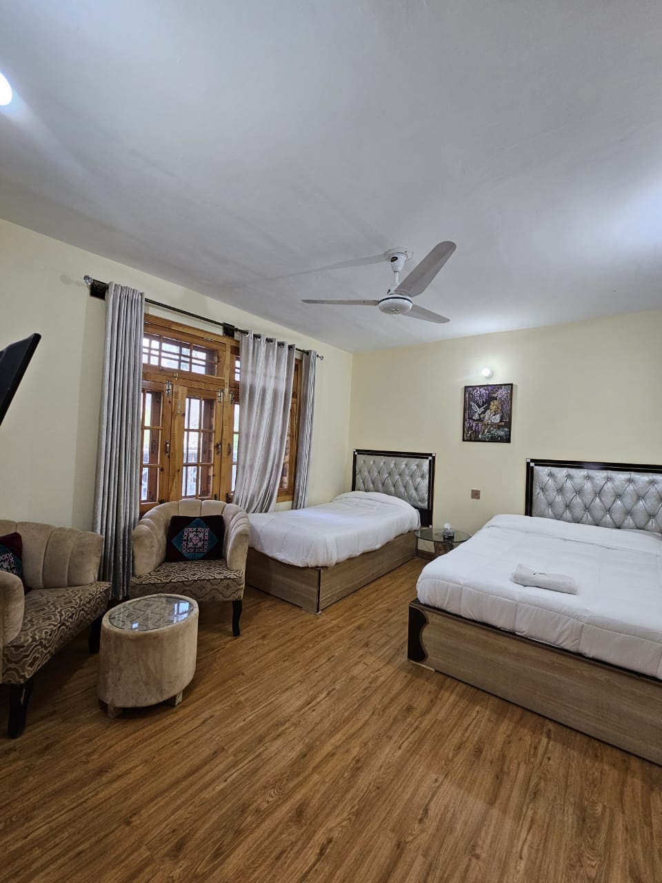 Tapasztald meg a Hunza-völgy lélegzetelállító szépségét a szállodánkban található modern és hangulatos, két hálószobás lakásunkból. A családoknak vagy kis csoportoknak tökéletes tágas lakás lenyűgöző kilátást nyújt a hegyekre, kényelmes ágyakat és meleg, barátságos légkört kínál. Élvezd a gyors Wi-Fi-t, a privát erkélyt és a helyi látnivalók könnyű megközelíthetőségét. Akár kalandra, akár pihenésre jöttél, a lakásunk tökéletes hely a visszavonulásra Hunza szívében. Foglalj most egy felejthetetlen foglaláshoz!