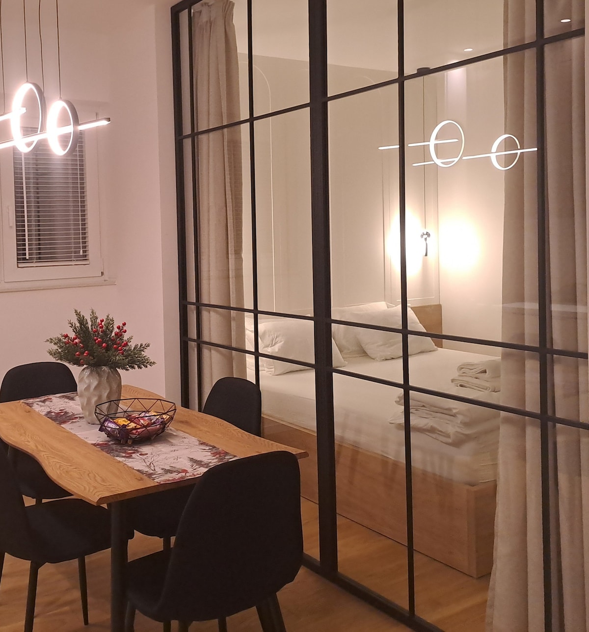 Welcome to the Organic Design Retreat in the Heart of Skopje Step into a cozy, light-filled space where warm wooden textures blend with soft white surfaces and beautifully preserved old walls. Nestled in the strict city center, the apartment is surrounded by Skopje’s most charming cafés, museums, and iconic attractions. A calm, authentic retreat designed for travelers who want to explore the city and still feel completely at home ✨