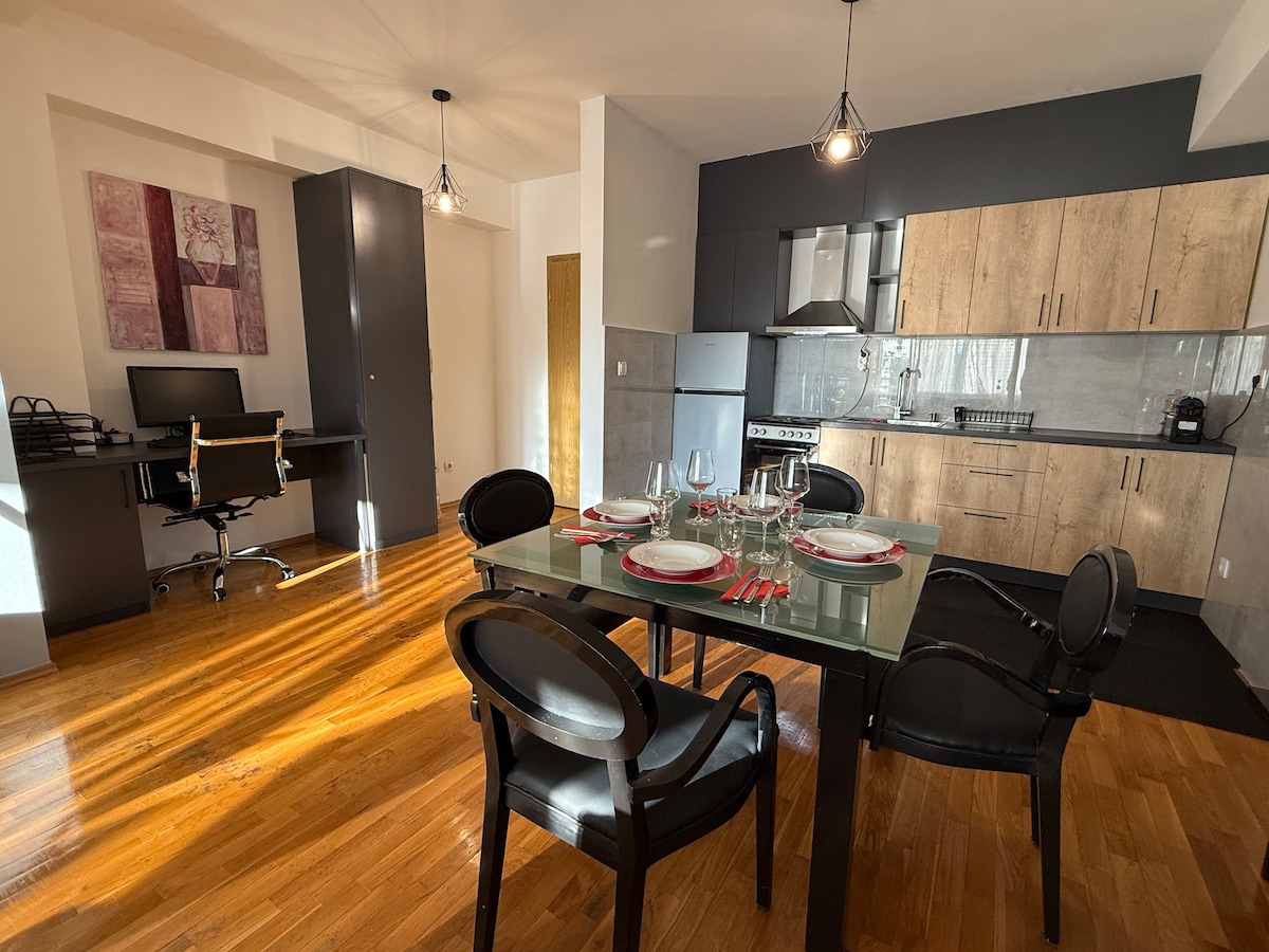 Üdvözlünk! Szállj meg kényelmesen és kényelmesen ebben a hangulatos, teljesen felszerelt lakásban. A főtértől 5-10 perc sétára található. Élvezd a gyors, ingyenes Wi-Fi-t, a légkondicionálást, a teljesen felszerelt konyhát és mindent, amire szükséged van a pihentető tartózkodáshoz. A lakás tökéletes helyen található a város felfedezéséhez. 100 méterre találsz szupermarketet, bárokat, kávézókat, kórházat és éjjel-nappal nyitva tartó gyógyszertárat. A népszerű látnivalók, mint a Vodno-hegy, a Matka, a régi bazár és a szkopjei erőd is könnyen megközelíthetők.