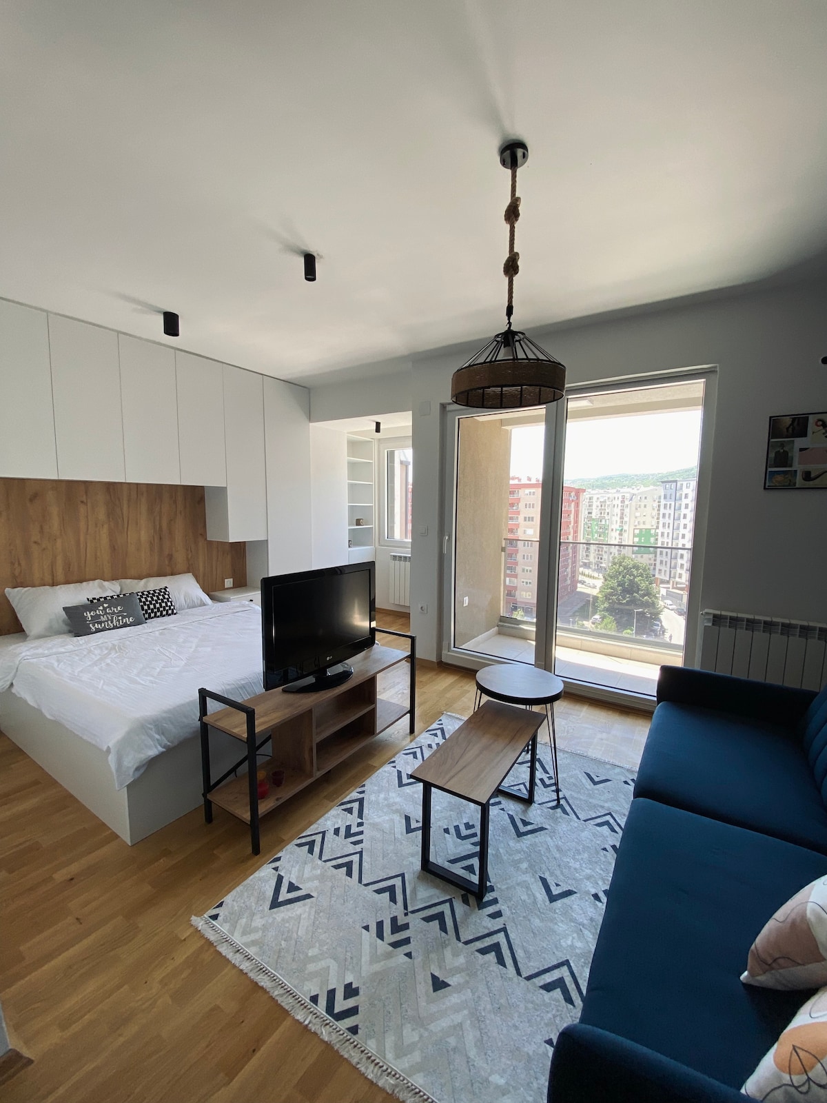 Élénk Skopje APT, kellemes tájakkal - 2 km-re a központtól, 0,5 km-re a Skopje City Mall bevásárlóközponttól, gyalogosan a buszmegállótól/tömegközlekedéstől. A terület éjjel-nappal ingyenes parkolási lehetőséget, éttermek, üzletek és kórházak széles választékát kínálja (Sistina/Zan Mitrev/szeptember 8.) Intelligens bejelentkezés, WiFi(5Ghz), munka/sminkállomás, TV, felszerelt konyha, állítható vízhőmérséklet, queen méretű ágy. A helyed családok számára gyermekek és háziállatok, párok, egyedülállók, távmunkások számára, akik kiváló hangulatot keresnek.