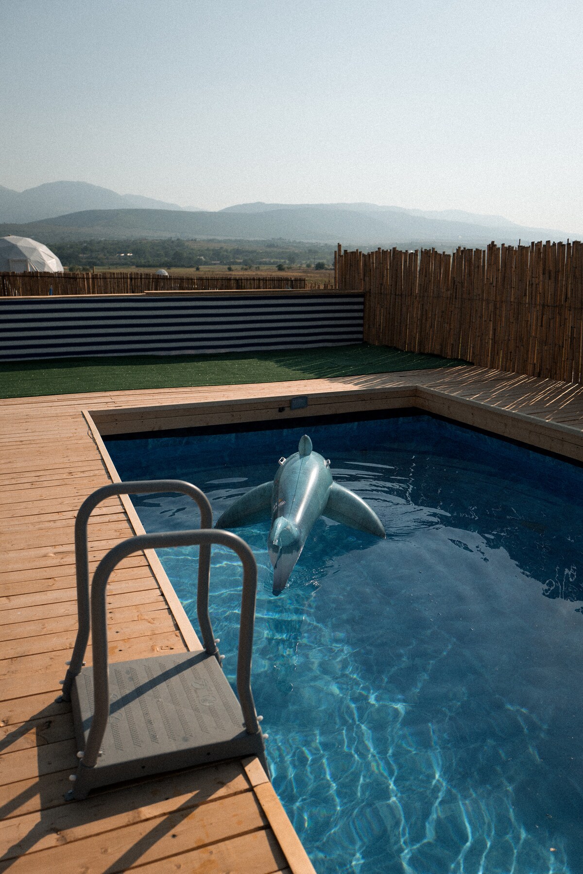 INSIDE ROOMS Our domes are designed for your comfort: cozy bedroom with a 2x2 m bed, poufs, hanger, small table with kettle, glasses & cutlery; modern bathroom with shower, hygienic shower, backlit mirror, towels, toothbrushes, slippers, heated floor; electronic lock, smoke detector & fire extinguisher. OUTDOOR & SHARED SPACES Refreshing swimming pool, BBQ area, fully equipped communal kitchen, and safe children’s playground. Mindori blends nature, comfort, and recreation perfectly.