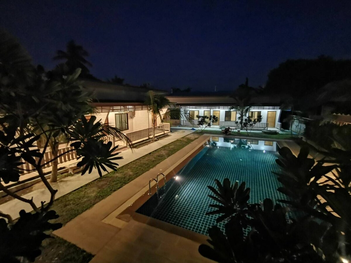 We offer a pool villa with private studio-like & fully furnished room with private bathroom and toilet for both either short and long term stay. Our room also equiped with a couter bar suitable for light cooking and washing as well. Last but not least, we have a relaxing swiming pool to enrich your stay. Our place is fully walled to protect your privacy and safety. We are located 50 meters from the main road which will ensure that you would have no traffic noise to disturb your stay.