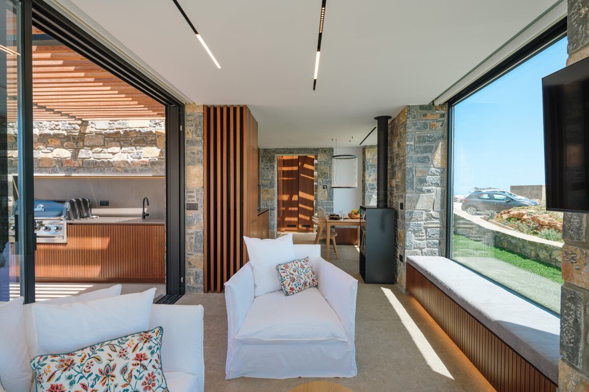 Élvezze a békés nyaralást a tengerparton! Ébredjen fel reggel, és nézze meg az ágyából a napfelkeltét. Pihenjen a szabadtéri pezsgőfürdőben, a közös medencében, a teraszokon, hallgassa a hullámok hangját és a madarak csiripelését. A kilátás mindenhol csodálatos. Előtte a Krétai-tenger végtelen kéksége, körülötte a lenyűgöző krétai természet. A két nappalitól a hálószobákig, az étkezőig, a konyháig, a fürdőszobákig, a szabadtéri zuhanyzóig a kilátás lenyűgöző.