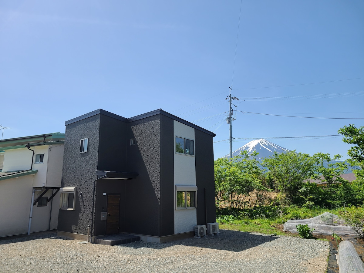 Az újonnan épült villa a gyönyörű Mt. Fujikawaguchiko, a gyönyörű Mt.Ez a bérbeadás a B épületben található, amely a három villa egyike.Ha napsütéses nap van, élvezheted a Mt. Fuji lenyűgöző kilátással az erkélyről és beltérről.Élvezd a pihentető nyaralást egy teljes privát térben, elegáns légkörrel a családoddal és a barátaiddal.Körülbelül 7 perces autóútra van a Kawaguchiko IC-től. Parkolóhely 3 autó számára az épület mellett. Hordó szauna áll a rendelkezésedre. Ha a BBQ grillt szeretnéd használni, az előző napig jelentkezz, mert a gáz elkészítéséhez szükséges.