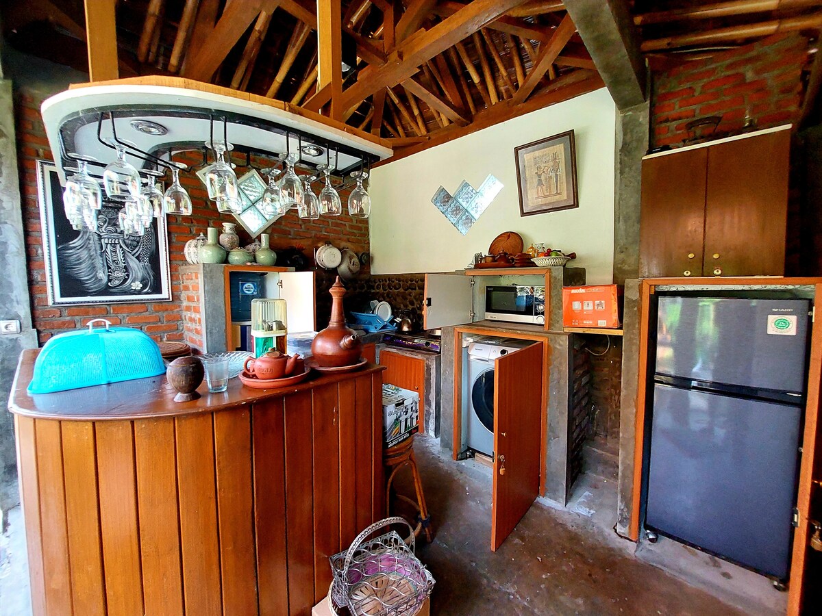 Nyugodt villa Garut szívében, tökéletes azoknak a családoknak vagy csoportoknak, akik pihentető kiruccanásra vágynak. 3 hálószobával, 2 fürdőszobával, teljesen felszerelt konyhával, meleg vízzel és összejövetelekhez szükséges amfiteátrummal. A Garut központjában található villánkból könnyen elérhetők a helyi helyek és éttermek, miközben még mindig békés rizsföldek veszik körül, és lélegzetelállító kilátás nyílik a Cikuray-hegyre. A kényelem tökéletes keveréke!