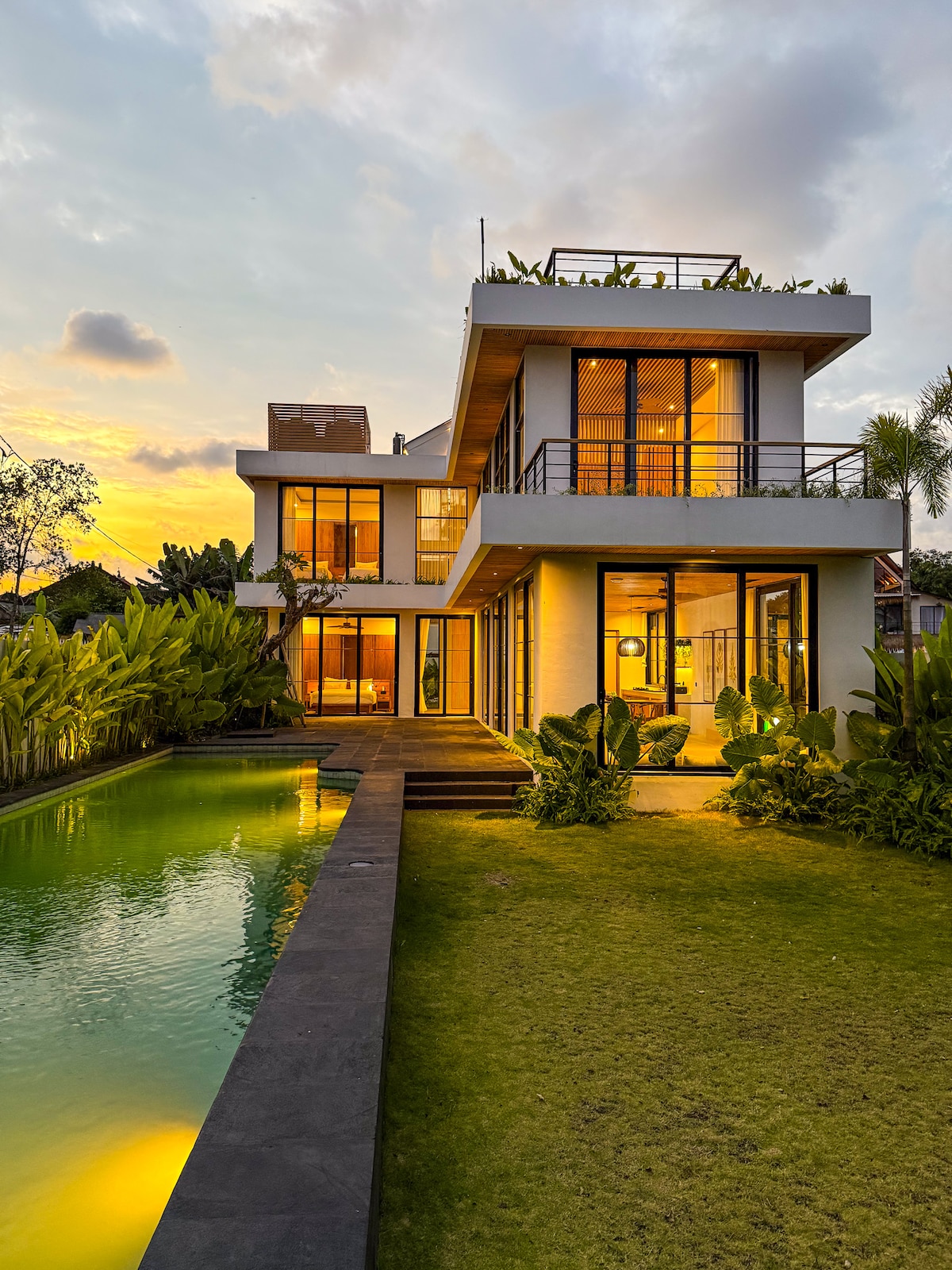 Menekülj el ebbe a modern, két hálószobás villába Pererenan szívében, amelyet buja trópusi növények vesznek körül. Letisztult vonalakkal, természetes anyagokkal és a beltéri-kültéri életet szem előtt tartva tervezték, így tökéletes keveréke a stílusnak és a természetnek. Élvezd a saját medencét, a nyitott lakóteret és a nyugodt kerti hangulatot – mindössze néhány percre a kávézóktól, strandoktól és Canggu nyüzsgő életétől. Ideális egy békés, mégis kapcsolódó Bali-utazáshoz.