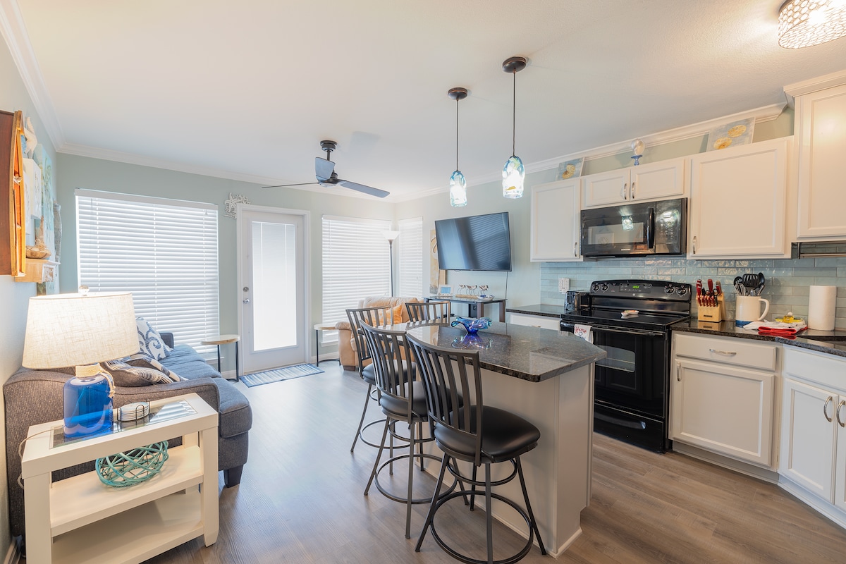 Imádni fogsz minden pillanatot ebben a gyönyörűen felújított és átalakított lakásban, amely az öbölrel szemben, a Seawall Boulevard túloldalán található. Üldögélhetsz az étkezőasztalnál, élvezheted az óceán látványát, vagy átköltözhetsz a tágas teraszra, és ott elfogyaszthatod. A hely elég messze van a sugárúton ahhoz, hogy meglepően csendes legyen, de a valóságban csak pillanatokra van a Galveston által kínált nagyszerű éttermektől és szórakozási lehetőségektől. Tökéletes kiruccanás a családnak és a barátoknak!