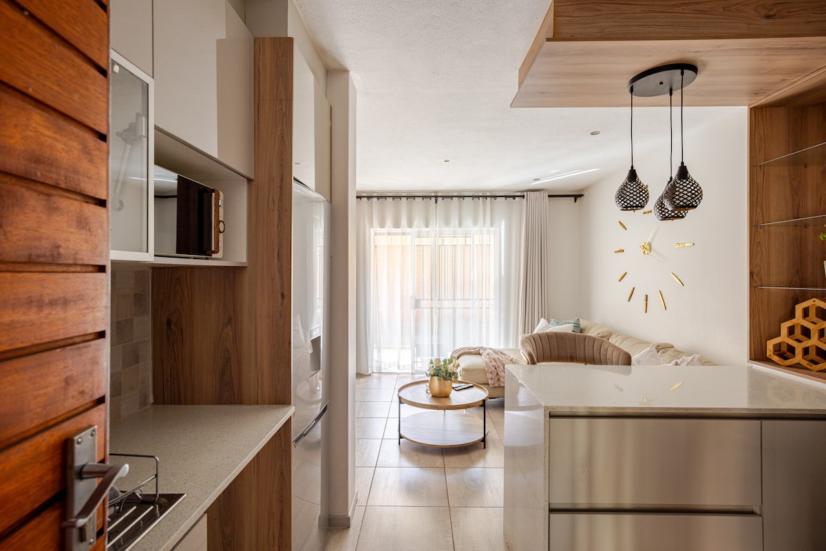 Stílusos felső emeleti lakás a Sandton CBD, Gautrain és bevásárlóközpontok közelében. Klasszikus kivitelű, kandallóval, nagy sebességű Wi-Fi-vel, teljes DStv-vel és Disney+-szal. Van egy king méretű ágy luxus ágyneművel. Inverterrel felszerelt, amely tartalék áramot biztosít a Wi-Fi-nek, a tévének és az eszközök töltéséhez akár 4 órán keresztül a terheléscsökkentés során. Jó helyen - kb. 1 km-re Sandton City-től. Kérjük, vedd figyelembe, hogy ez a lakás a harmadik emeleten található, és az épületben nincs lift, a bejutás csak lépcsőn keresztül lehetséges.
