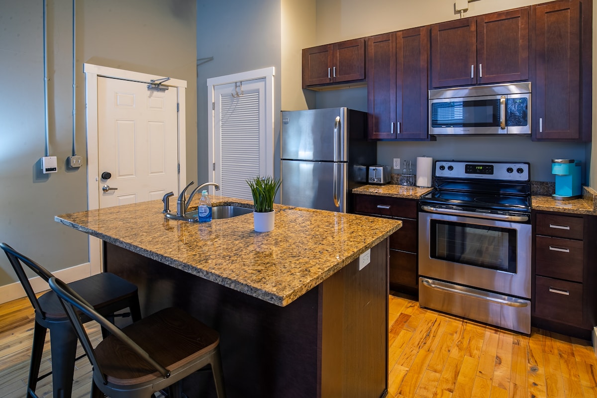 Ezt a történelmi 1890-es loftlakást újragondolták a modern élethez. A milliárdos Jay Van Andel szülőháza, amely Grand Rapids (The Cherie Inn) legjobb reggelizőhelye felett található, és East Hills nyüzsgő üzleteinek és éttermeinek szívében található - ez az Univerzum központja. Shuffleboard, Xbox és több okostévé a további szórakozáshoz, ha szükséges. A leggyorsabb internet-hozzáférés a környéken (1,2 koncert és wifi6). A legjobb hely Grand Rapidsben egy kiruccanáshoz.