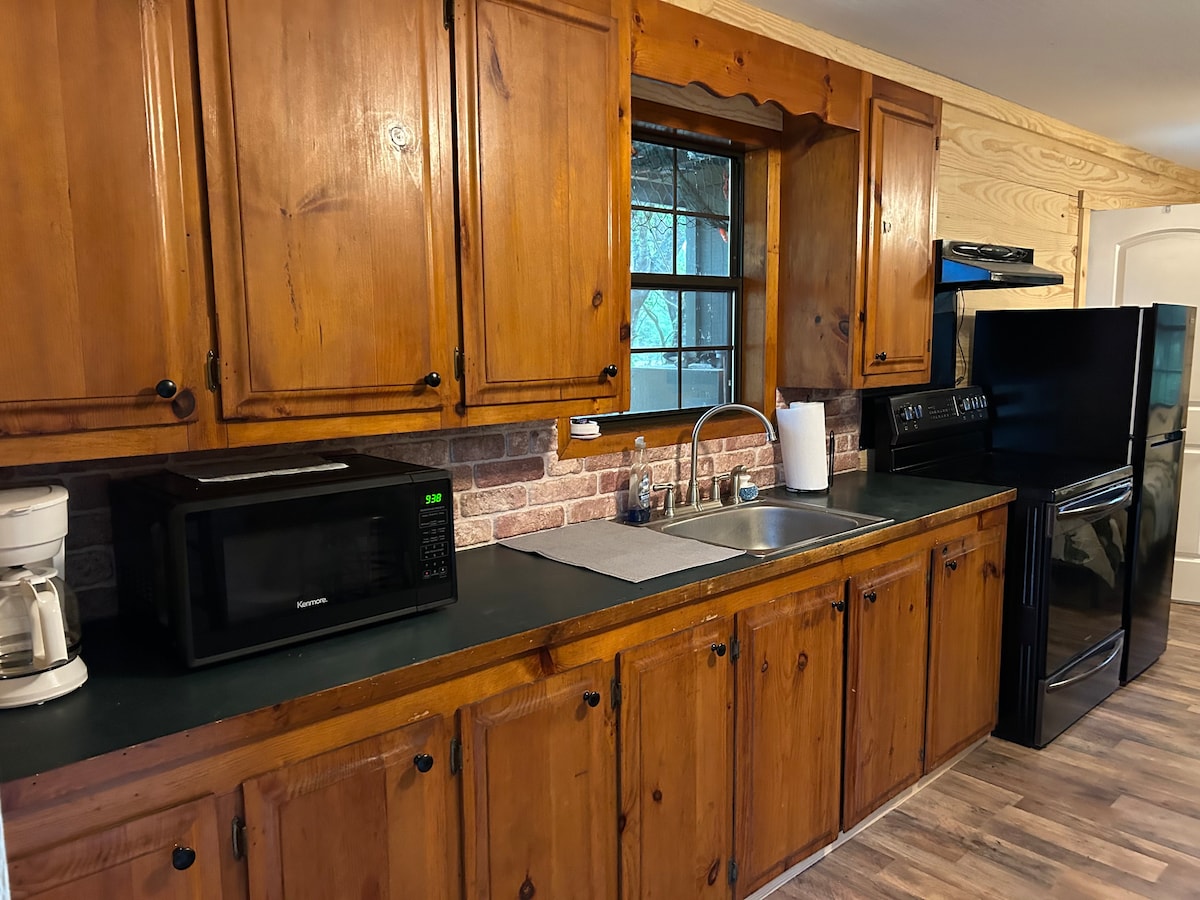Nyugodj meg ebben az egyedi és nyugodt kiruccanásban. Ez a víkendház az 1950-es években épült tejipari dolgozók számára. 11 hektáron terül el. Ez a terület egy régi tejgazdaság. Rengeteg családtörténet van itt egészen a második világháborúig. 1 hálószoba queen méretű ággyal, kis mosókonyhával, queen méretű kihajtható kanapéval, fazekakkal és serpenyővel, edényekkel, mikrohullámú sütővel, tűzhellyel és hűtőszekrénnyel jégkészítővel. Szuper gyors, nagy sebességű internet. Roku tv 's. Békés elülső veranda hintaszékekkel és nagyon nyugodt kilátással.
