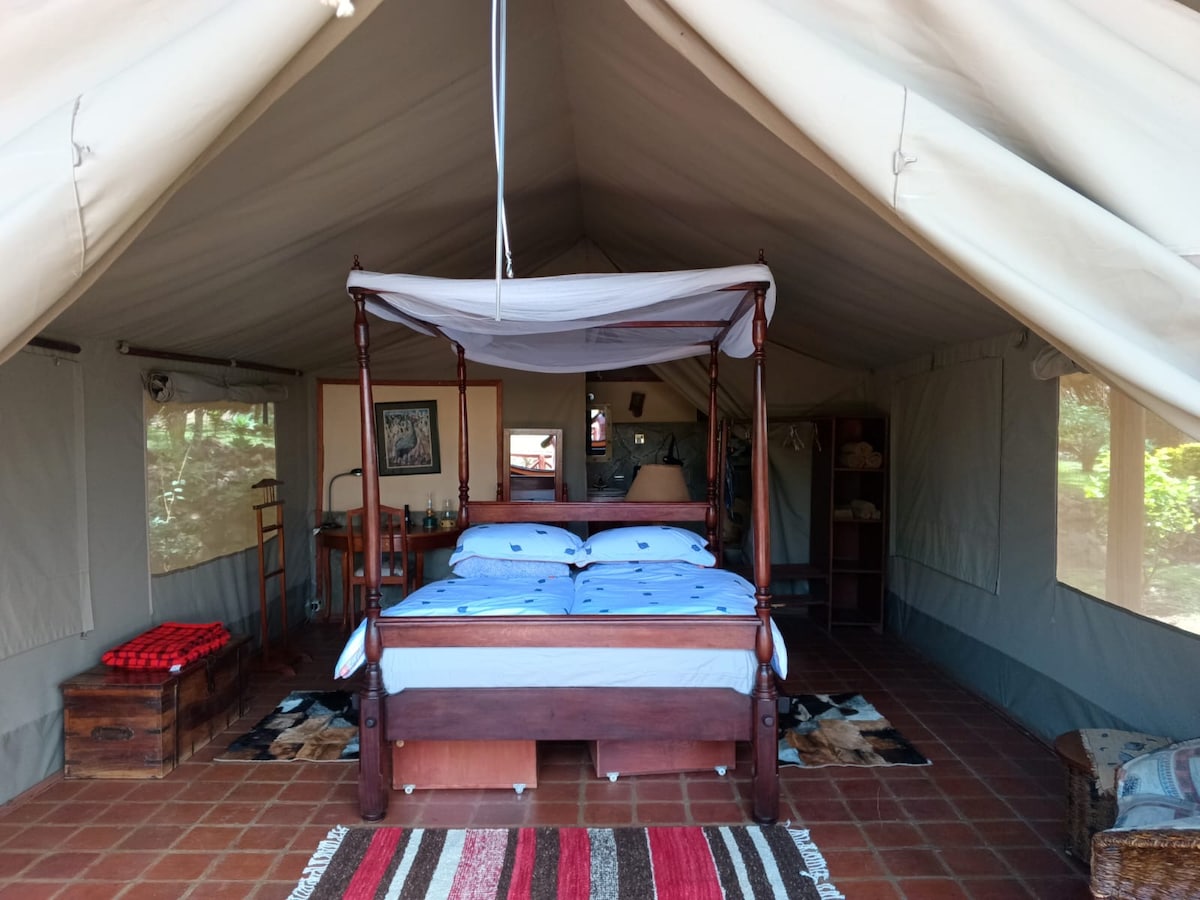 Menekülj egy bájos szafari sátorba, amely egy privát, 2 hektáros trópusi erdőben található, mindössze 700 méterre Kilifi lenyűgöző Bofa strandjától. Élvezd a king-size ágyat, a munkaterületet, az egyszerű konyhát, a komposztáló vécét és a kültéri zuhanyzót a rusztikus, mégis kényelmes tartózkodás érdekében. Ébredj madárcsicsergésre, és merülj el a természet nyugalmában. Kényelmes elhelyezkedés: 5 perc autóútra a Salty's Kite Village & Express Shop üzletétől, 8 percre Naivastól és 6 percre az Aga Khan klinikától. Barátságos kutyáink vannak az ingatlanban.
