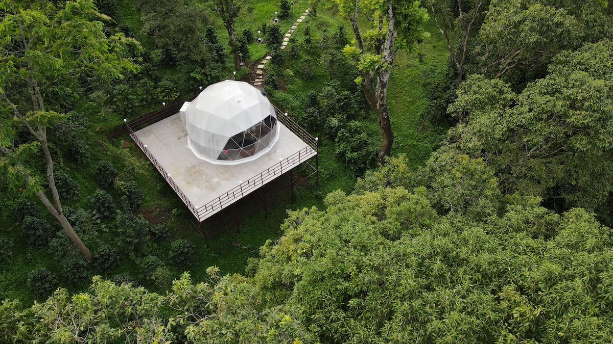 Luxuskemping kupolaház a Woodpecker kávéültetvényen