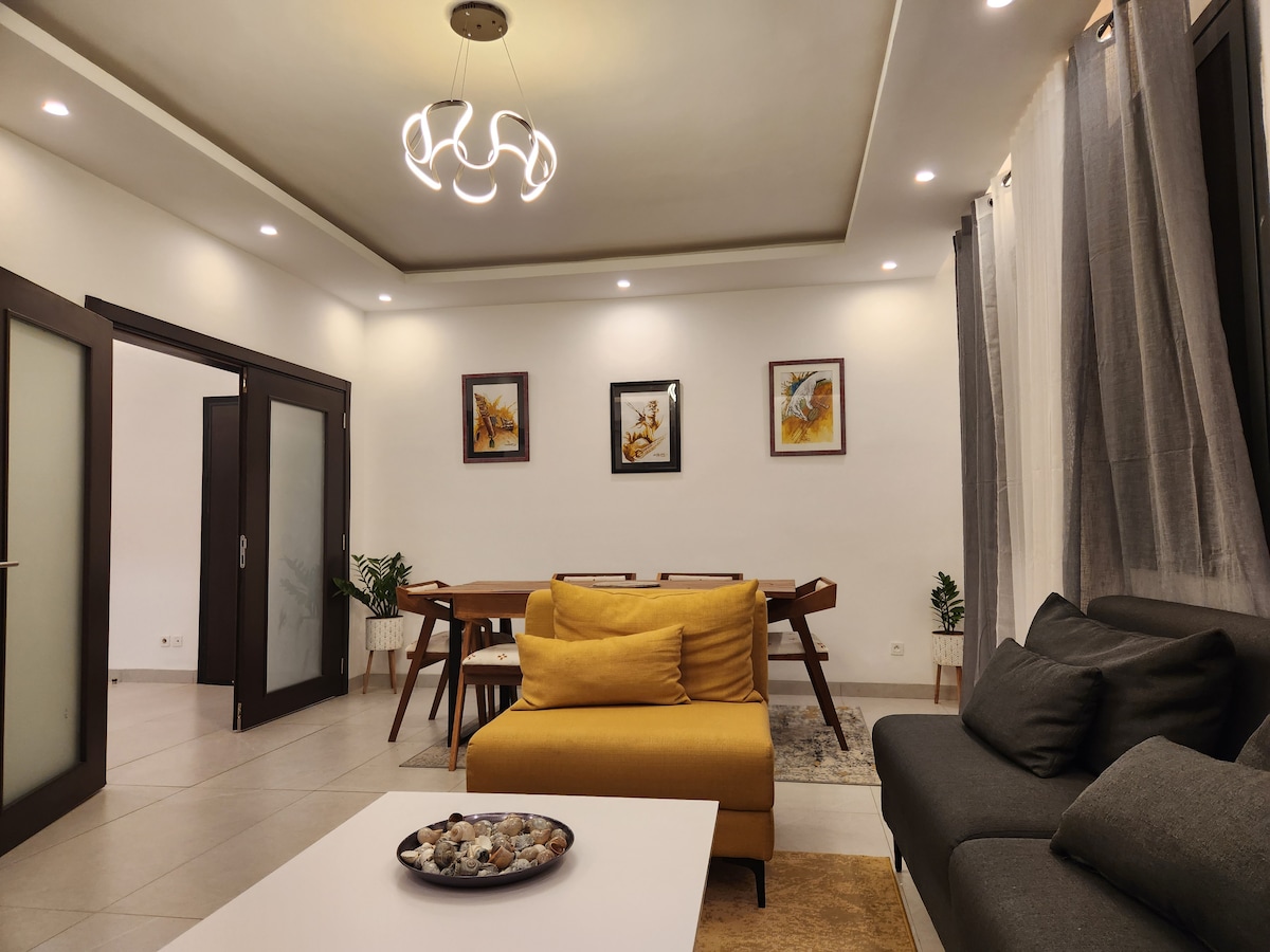 Szállj meg vadonatúj, elegáns és akadálymentes, tengerre néző apartmanunkban (100 méterre a strandtól). Ez a békés és tágas hely felejthetetlen, pihentető szállást kínál pároknak, barátoknak vagy családnak. Teljesen légkondicionált, és minden szükséges kényelmi szolgáltatással rendelkezik, hogy emlékezetes tartózkodást biztosítson a Dakaroise partvidékének partján, Teranga földjén.