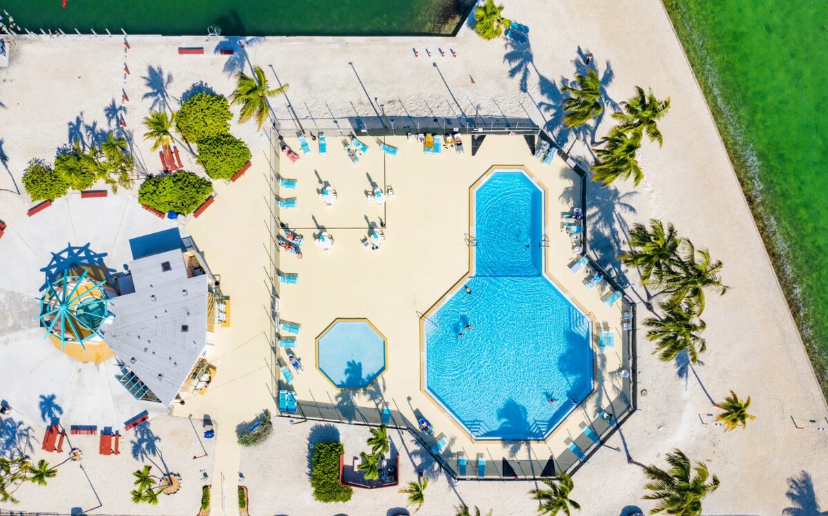 4 hálószobás otthon a Key Colony Beachen, a csatorna partján, saját medencével, mólóval, szabadtéri konyhával, valamint gyors hozzáféréssel az óceánhoz és az öbölhöz a Vaca Cuton keresztül. 8 fő elszállásolására alkalmas, 2 king-size és 2 queen-size ággyal felszerelt hálószobával. Sétálj el az éttermekbe, a pickleball-pályára, a golfpályára és az óceánparti parkba a naplementékhez. Ideális családok, hajósok és horgászok számára, valamint a Keys-szigeteken töltött laza hetekhez.