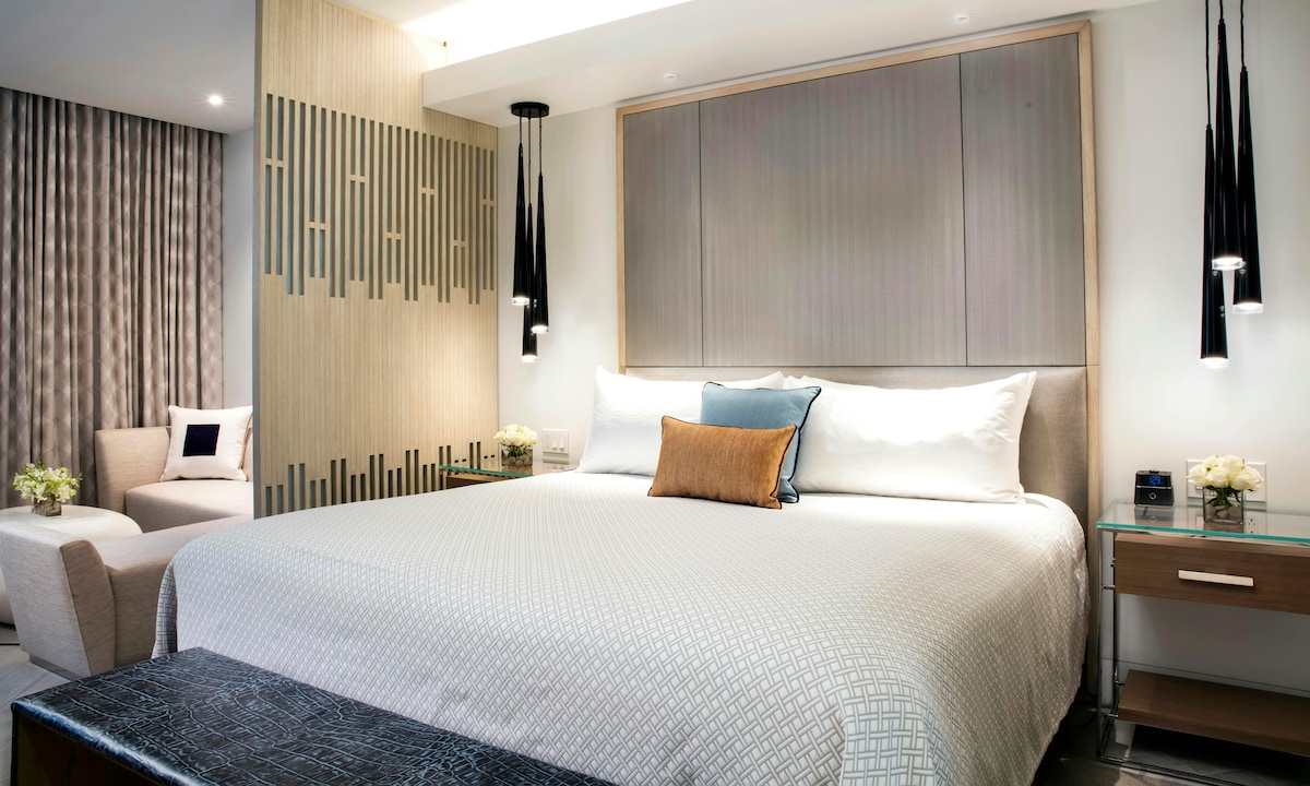 Élvezd a 910 négyzetméteres trópusi, modern életet ebben a 2 hálószobás, kétszintes luxuslakosztályban. Az emeleti hálószobákban párnázott queen méretű ágyak, íróasztalok, tágas szekrények és spa-inspired külön fürdőszobák találhatók, az egyikben zuhanykabin található, amely esős zuhanyfejjel, a másik pedig teljes méretű fürdőkáddal rendelkezik. A lakosztályhoz tartozik egy földszinti nappali, amely kényelmes, queen-size kanapéval, vendégszobával és mosógéppel és szárítógéppel + kertre néző mosóterülettel rendelkezik.