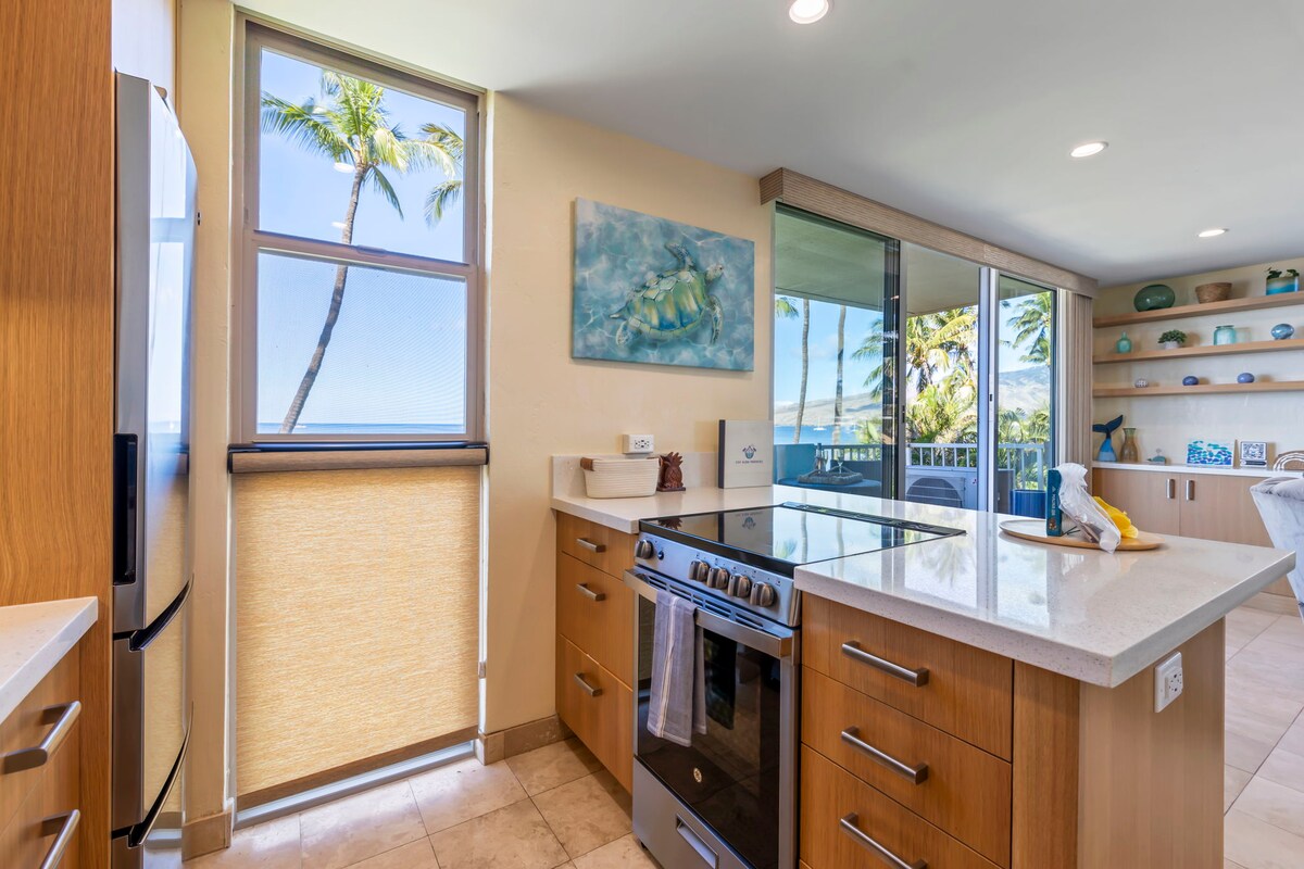 LENYŰGÖZŐ KILÁTÁS AZ ÓCEÁNRA ÉS A NAPLEMENTÉRE, beleértve a külső szigeteket a nappaliból és a lanaiból. Esténként élvezheted az italokat, miközben a hihetetlen naplementéket nézed. A társasházi lakást teljesen felújították és korszerűsítették. A konyhában és a fürdőszobában juharszekrények és elegáns gránitpultok találhatók. Van egy kényelmes, king méretű ágy, egy jól felszerelt konyha, központi légkondicionálás, mindenhol új bambuszpadló és egy új mosógép/szárítógép. A társasház tulajdonosa és karbantartója maui lakosok.