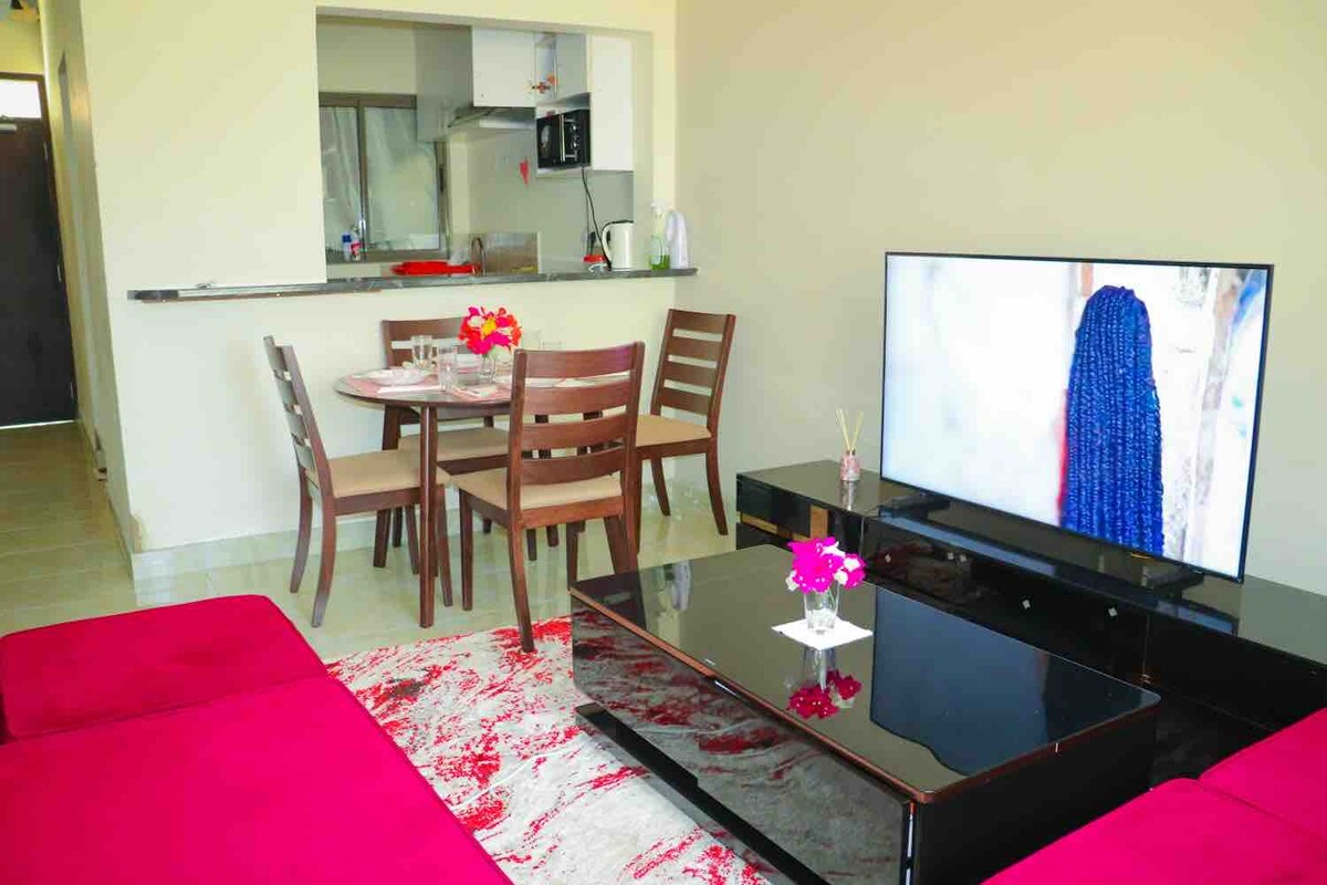 Egy hangulatos, berendezett stúdióapartman (Bamburi) *2 felnőtt és 1 gyermek vagy 3 felnőtt számára alkalmas, franciaággyal és egyszemélyes ággyal berendezve *Napi takarítás *Étkezőasztal négy székkel, kanapéval, dohányzóasztallal *AC *TV *Zárható széf *Erkély-két szék, dohányzóasztal *Konyha - hűtőszekrény, mikrohullámú sütő, vízforraló, kávéfőző, kenyérpirító, edények, evőeszközök *Hozzáférés a kényelmi szolgáltatásokhoz - medence, játszótér, strand bár, étterem, edzőterem, strand, mosoda * 21 km Moi Int repülőtértől *26 km SGR Mombasa-tól