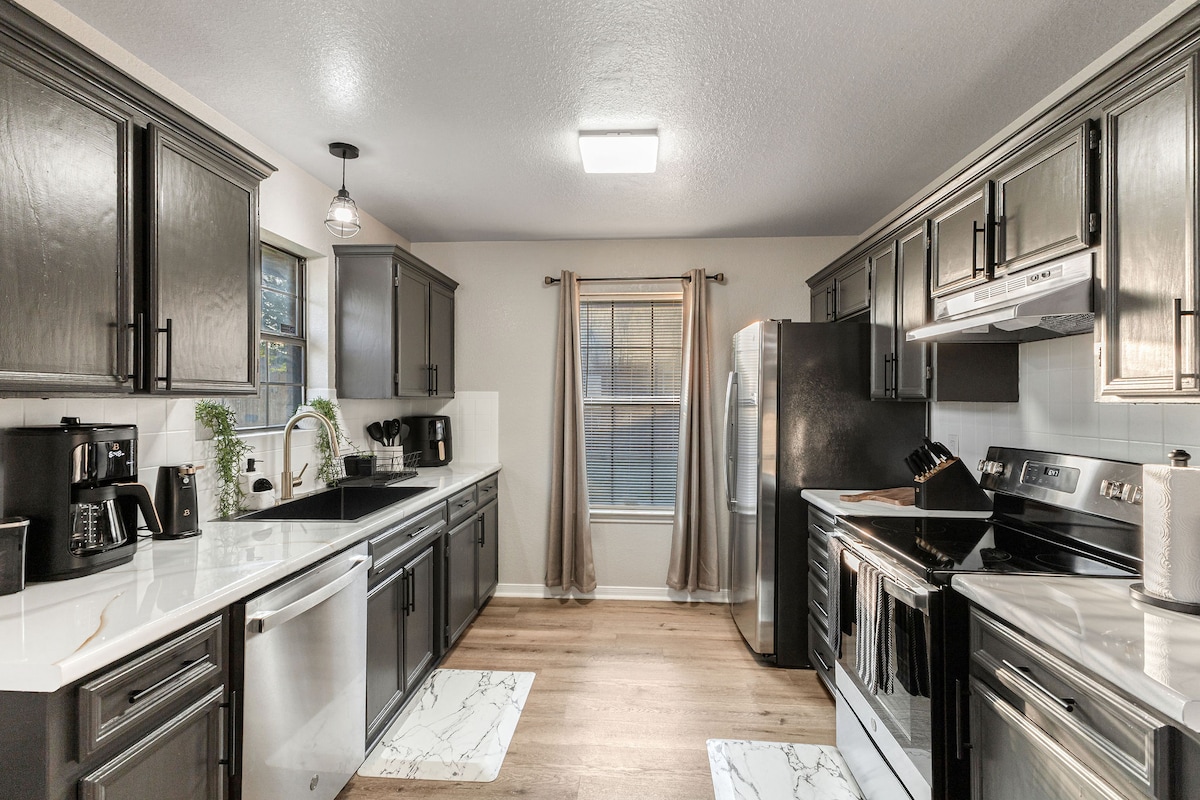 Modern 3BR/2BA intelligens otthon a csendes Killeenben, mindössze néhány percre Fort Cavazostól, éttermektől, vásárlástól és családi tevékenységektől. 8 fő fér el a king, queen, ikerágyakkal és egy kanapéággyal. Az Alexa által működtetett intelligens technológia vezérli a világítást, a légkondicionálást és a szórakozást. Márványkonyha, rozsdamentes acél készülékek, gyors Wi-Fi, tévék több szobában és hangulatos kandalló. A hátsó udvaron egy pergola található ülőhellyel, tűzrakóhellyel, pulttal, udvari játékokkal és hintákkal, amelyek tökéletesek családoknak vagy üzleti utazóknak.