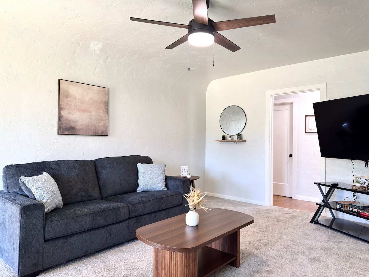Fedezd fel a kényelmet ebben a bájos lakóhelyen, amely egy csodálatos és biztonságos környéken található. Élvezd az 50 Mbps sebességű Wi-Fi-t és a három 4K-s tévét. A jól felszerelt konyha alapvető kellékekkel büszkélkedhet, beleértve a kávéfőzőt és még sok minden mást. Kávét, teát, fűszereket, cukrot és étolajat találsz átgondoltan. A hátsó udvaron egy fedett terasz található kültéri asztallal és székekkel, valamint egy gázgrill az Ön kényelme és élvezete érdekében.