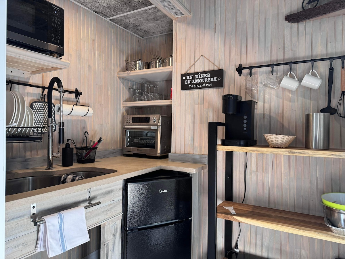 A Mont Chalet Estrie-ben, La Patrie kis falujában található. Körülbelül tizenöt percre a Mont-Mégantic Nemzeti Parktól. Ez a faház áram NÉLKÜL biztosítja a kívánt kényelmet, miközben teljesen független vagy. A fatüzelésű fűtés, a hűtő, a tűzhely és a meleg víz propángázzal és lámpákkal működik a 12 V-os elemeknek köszönhetően. Síelés, hótalpas túrázás és sétálás is lehetséges ezen a 270 hektáros területen. Látogass el ide, és el leszel bűvölve. Gyere, és csodáld meg a csillagos égboltot 🌟