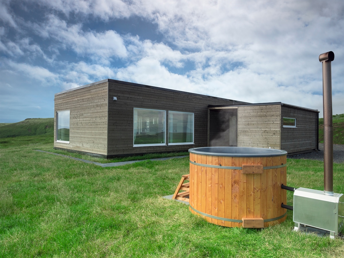 A meleg és újonnan épült ház között található Vik és Kirkjubæjarklaustur. Ez 28m2 méretű, és van osztva egy fürdőszoba, majd egy nyitott tér, ahol a konyha, egy nappali, majd egy sarokban, ahol a franciaágy van. A ház mellett a gazdaság Snæbýli 1, amely az utolsó gazdaság, mielőtt elindult a hegyi úton (F210).