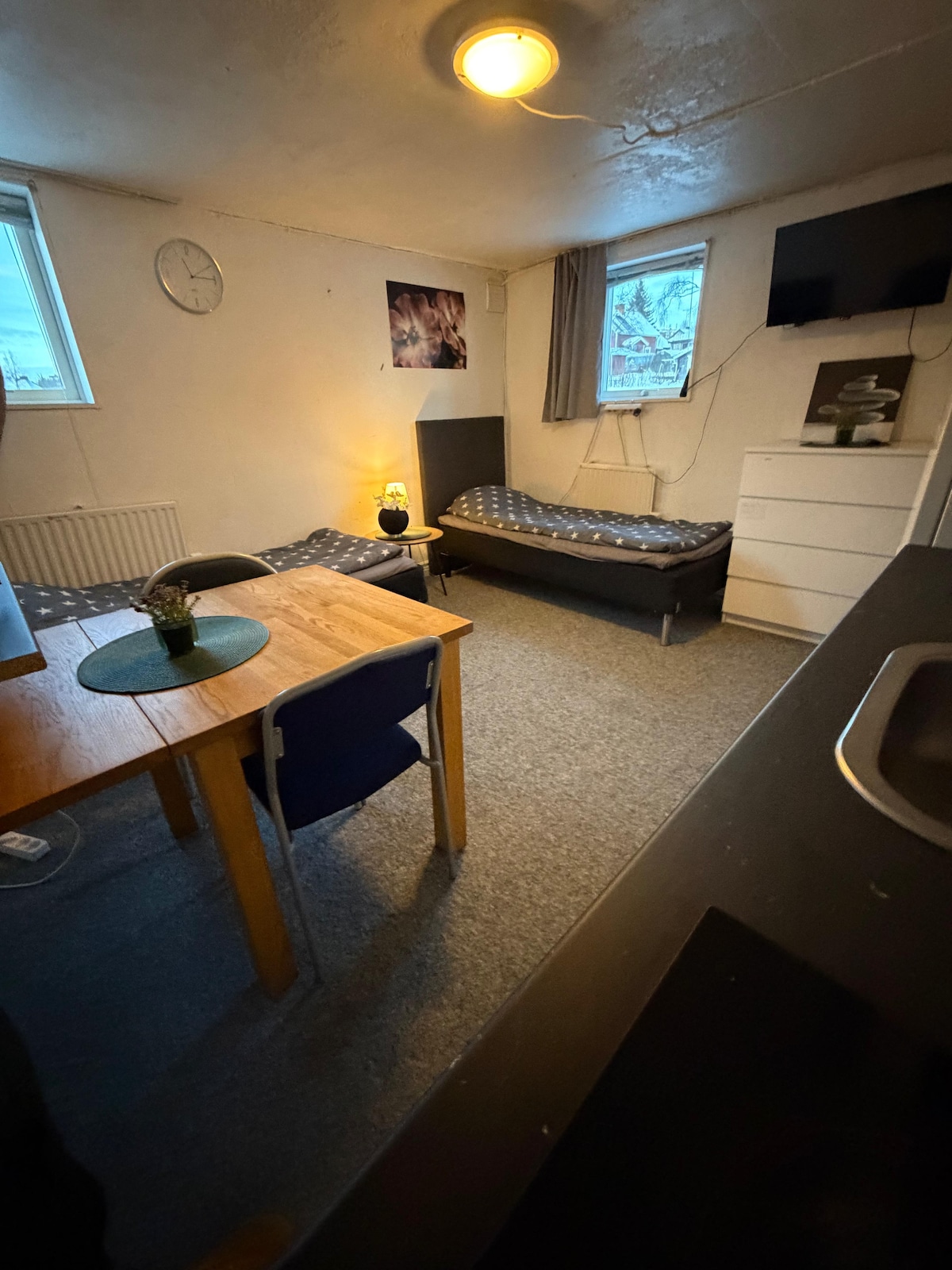 En mysig enklare lägenhet med bra förbindelser med buss. 3 km till centrum, 600 meter till stormarknadsområde med matbutiker. Lägenheten är utrustad med ett kokskåp. Dusch och bastu finns tillgängligt i närliggande byggnad. Parkering för ett fordon ingår, det är en parkeringsplats med motorvärmare ansluten till lägenheten. Husdjur är tillåtna i lägenheten, 100 meter från lägenhet finns en stor hundrastgård i grönområde. I lägenheten ingår även sänglinne och handdukar etc.